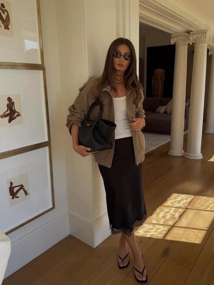 除了单品和配色,amybethvdl 的穿搭里还有很多 “小心机” 细节,正是这些细节让基础款变得不普通。比如她穿连衣裙时,很少会让裙子直接贴在身上,要么在腰间系一条宽腰带,要么在外搭一件短款针织衫,悄悄优化身材比例;穿牛仔裤时,她会把上衣的下摆塞进裤子里一部分,或者选择短款上衣,露出一点点腰线,哪怕是微胖身材也能穿出利落感;配饰方面,她从不戴夸张的首饰,反而喜欢用细链条项链、小巧的耳钉或帆布包来点缀,比如一套简单的黑白穿搭,加一条银色细项链,瞬间就多了几分精致感,不会让整体造型显得寡淡。