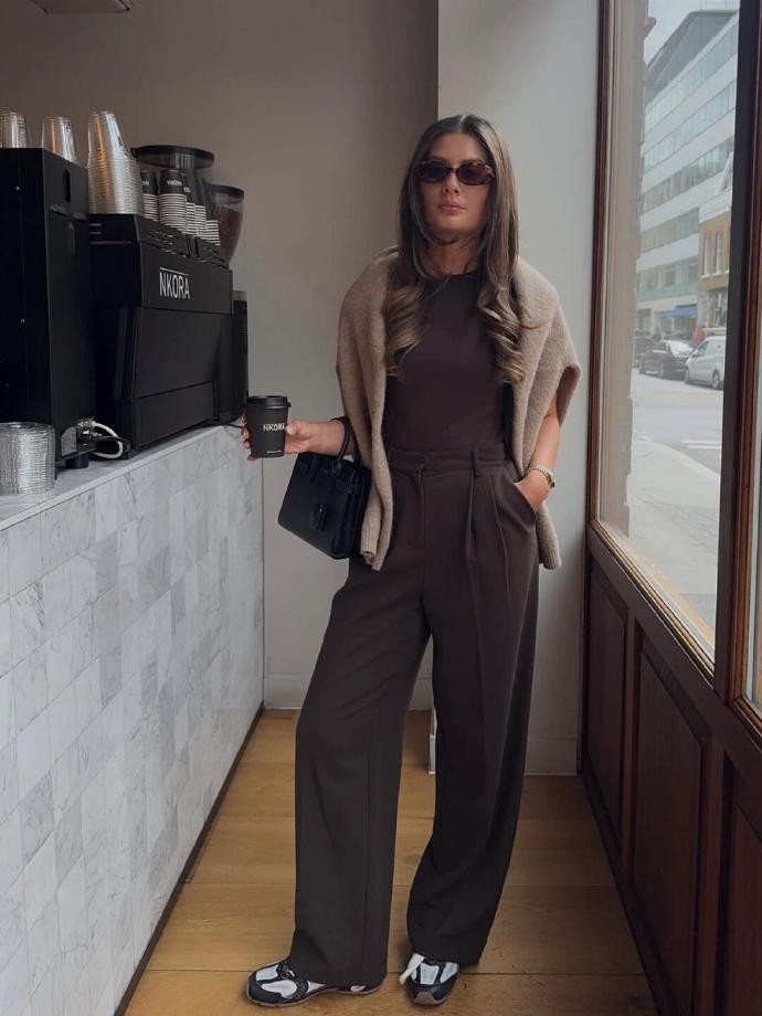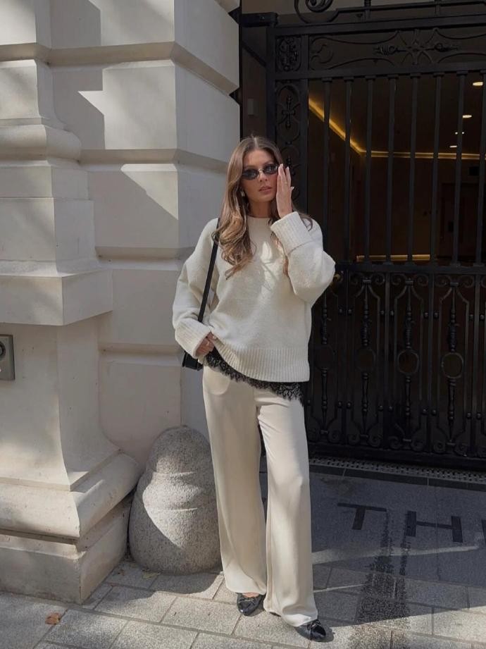 配色也是 amybethvdl 的拿手好戏,她很少用高饱和的撞色,反而偏爱低饱和色系与同色系的搭配,显白又不挑肤色。比如她的一套秋日 look:浅卡其色的针织开衫,内搭米白色的吊带裙,裙摆长度到膝盖上方一点,脚上穿一双浅棕色的短靴,整套穿搭从浅到深过渡自然,温柔又显气质,哪怕是黄皮穿也不会显暗沉;还有她常穿的灰色系搭配,浅灰色的卫衣配深灰色的运动裤,外搭一件黑色的短款夹克,用小面积的黑色平衡灰色的柔和,既保留了休闲感,又不会显得拖沓,出门遛弯或买咖啡都很合适。这种配色逻辑对新手特别友好,不用记复杂的配色公式,只要记住 “同色系深浅搭配” 或 “低饱和色互搭”,就能轻松避开显土的雷区。