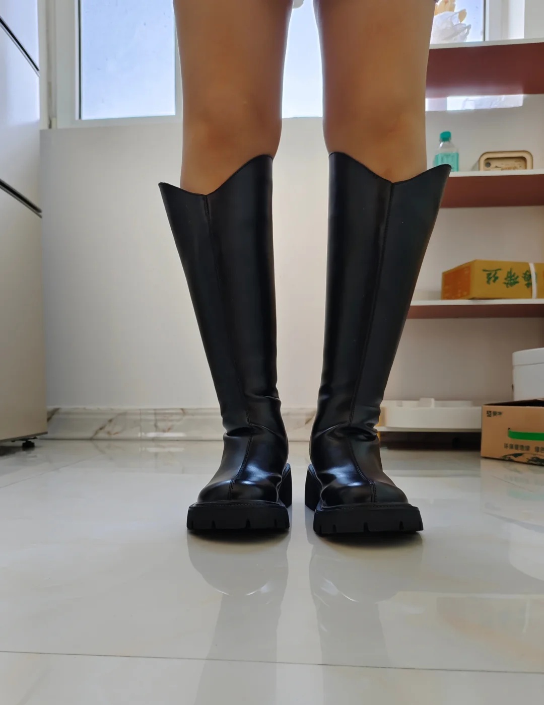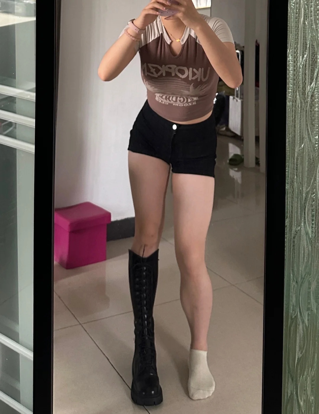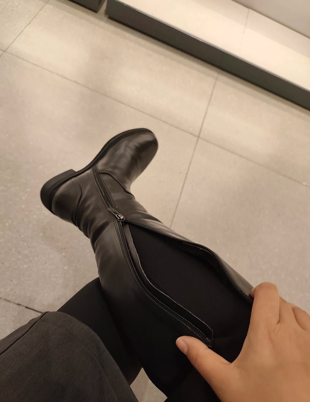 我们在选购鞋子的时候看模特穿的长筒靴,感觉能修饰腿型,而且还可以当裤子穿,应该也会很暖和。