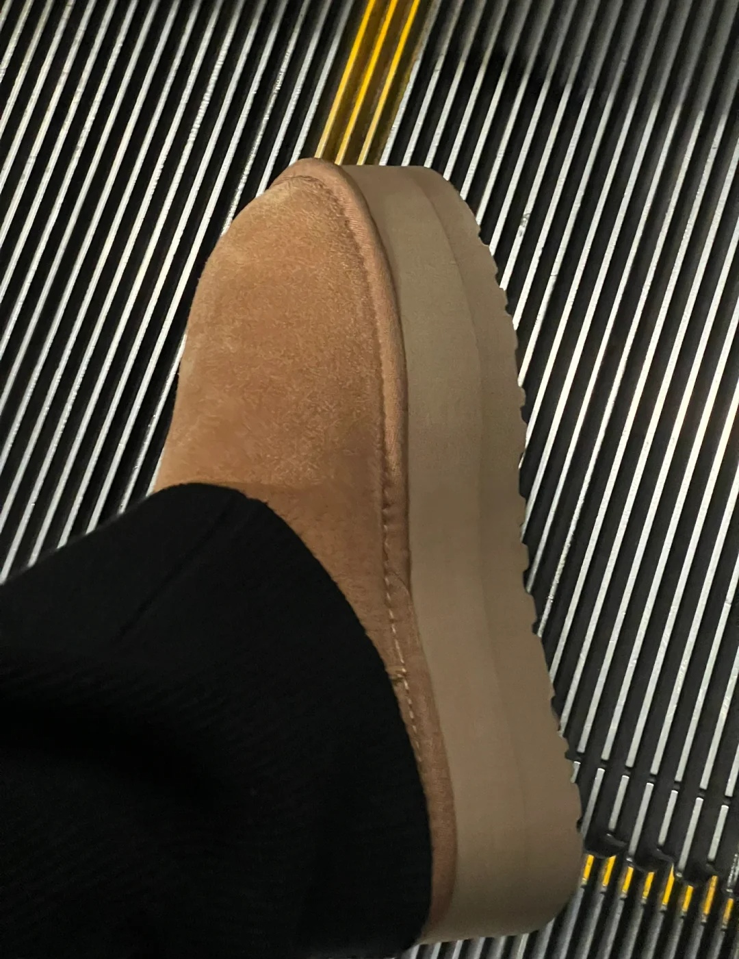 这种鞋子也许拍照会好看,但是并不适合日常生活,更不适合在秋冬季节来穿。虽然鞋子里面被毛毛包裹,穿在脚上感觉也很暖和,