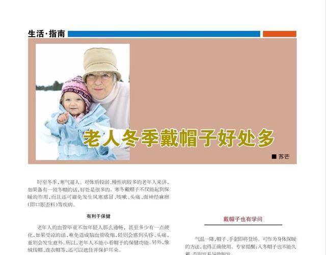 [1]苏芒.老人冬季戴帽子好处多[J].人人健康,2012,(22):38.