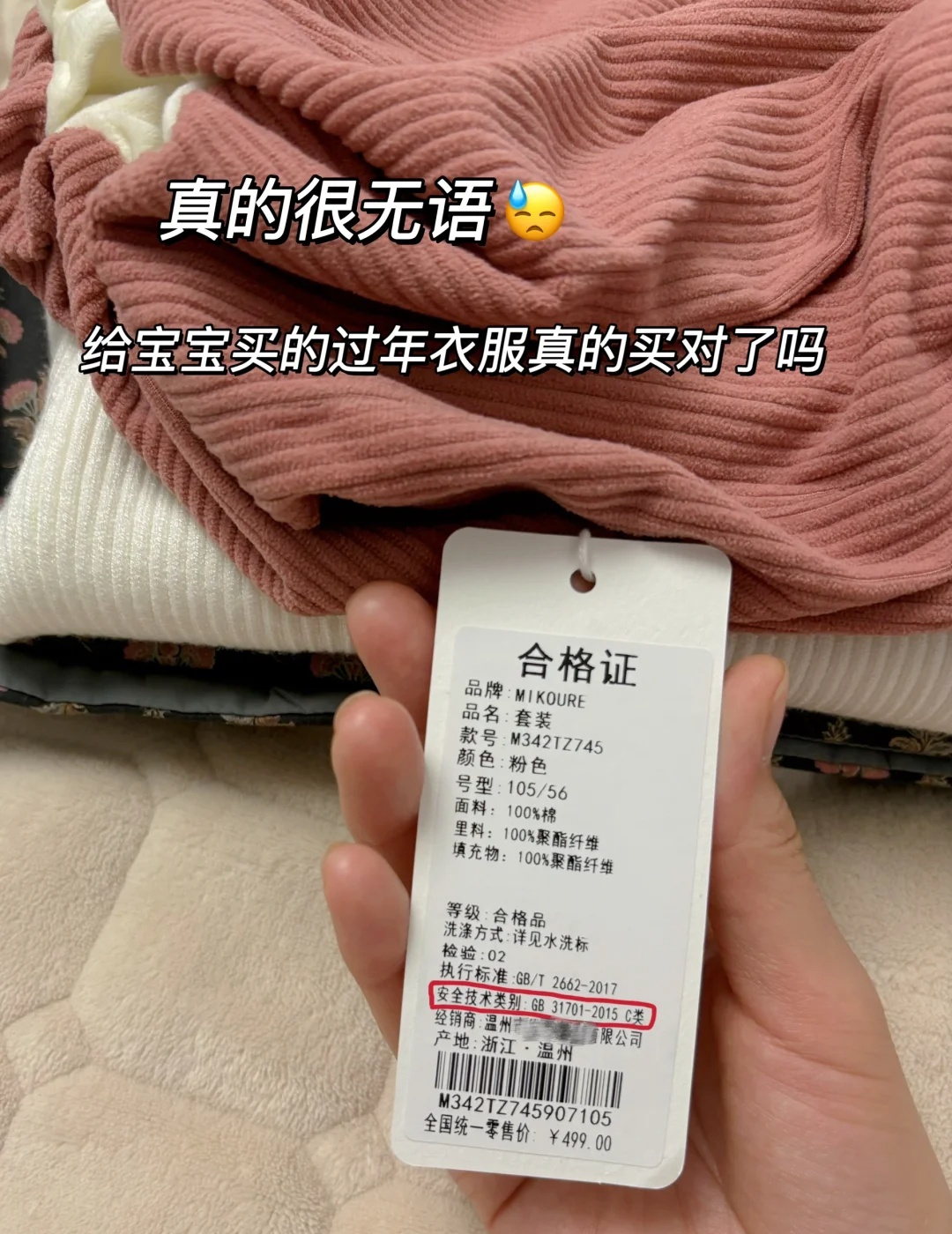 如果这些东西都没有,我们就无法得知衣服的面料和成分安全类别等等,如果是回收的旧衣服或者是使用了劣质的布料制作的衣服,就不值得我们买了!