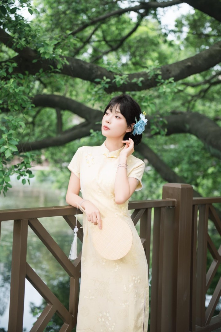 旗袍的魔力在于其能够巧妙地将女性的身体曲线转化为一件艺术品,无需过多的装饰或夸张的设计,便能展现出含蓄而饱满的神韵。它的设计既不是紧身束腰那样野蛮的征服,也不是宽松衣袍的随意包容,而是以精致的方式探寻身体与服饰之间的和谐共鸣。立领微微抬起下巴,让人保持优雅的姿态;开衩的设计则给予了行动自如的同时,不经意间流露出腿部线条的优美。每一件旗袍都是匠人的心血结晶,他们用软尺轻拂过身体的每一寸肌肤,绘制出既贴合又得体的轮廓,使旗袍成为了展现身体之美的绝佳载体。