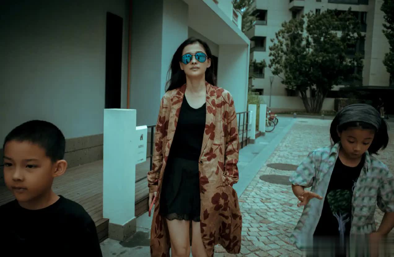 梅婷带一双儿女拍大片,外长里短穿搭时髦,状态令人羡慕