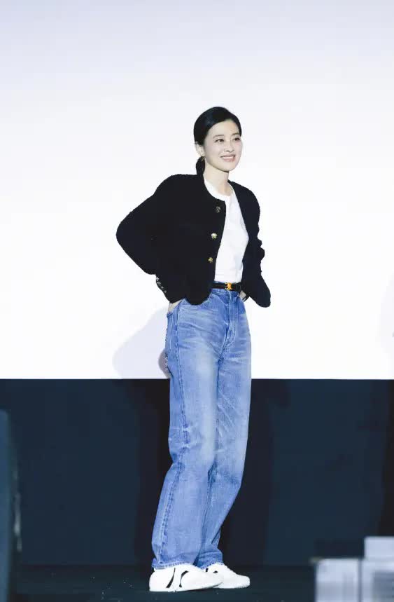 外套的长度直接影响搭配效果。中长款外套适合身高较高的女性,而梅婷选择的短款外套则更加适合身材娇小的女性。这款黑色外套,简单大方,搭配白色内搭,如白T恤或白卫衣,不仅让整体造型看起来更加清新,还能起到减龄效果。下身搭配一条宽松的牛仔裤,再配上一双小白鞋,整体造型简洁利落,既有时尚感,又显得年轻活力。