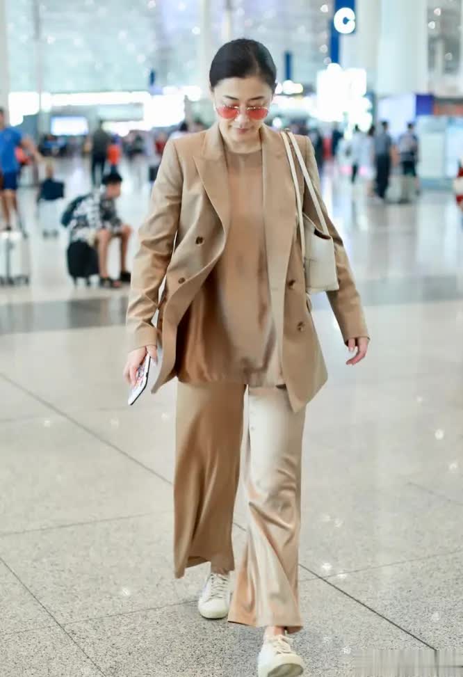再来说说西服套装,上身的西服外套柔软舒适,设计精致,穿上它瞬间提升气质。内搭的面料具有光泽感,轻盈柔软,给人一种轻松舒适的感觉。而裤子设计宽松,触感柔和,不会给肌肤带来不适。梅婷还搭配了一款白色皮质包包,包身和肩带都显得非常有质感。鞋子的选择可以是高跟鞋,拉长身形,也可以是休闲平底鞋,舒适又时尚。