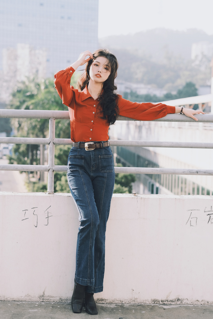 1. 人物妆造要复古,以90年代为例,那个时候是很流行港风穿搭的,一头乌黑的卷发加上复古的红色衬衫,再穿上风靡一时的喇叭牛仔裤,拍出来简直不要太还原。无论你想拍那个时代的复古,在给人物妆造之前一定要记得找张参考图,这样照片才不容易出错!