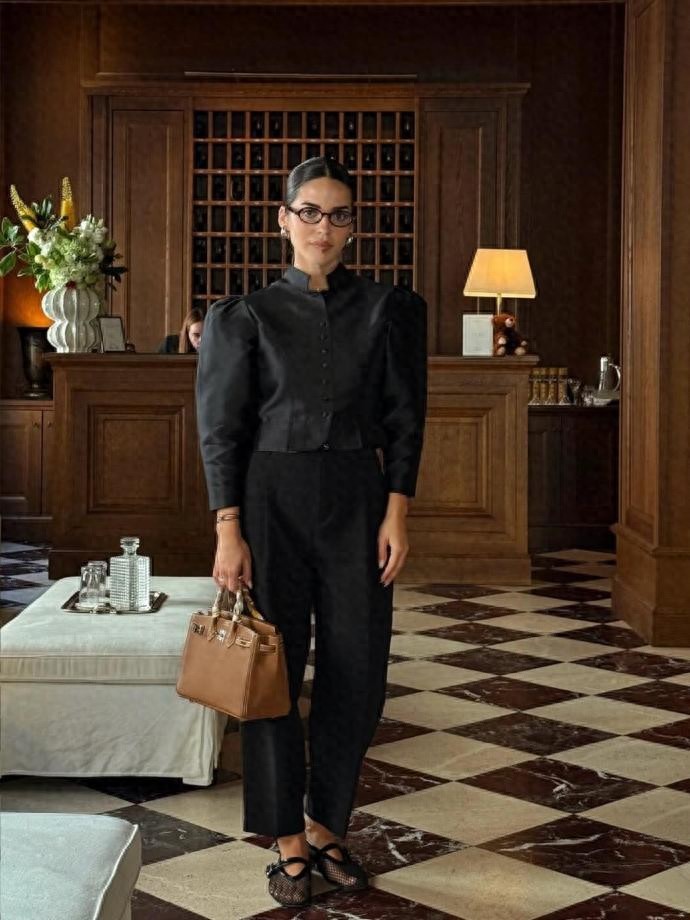 配饰虽然不是Jelena穿搭的主角,但却是提升造型完整度的关键。她的配饰清单里,最常见的是各种款式的帽子和项链。夏天的时候,她会戴一顶草编遮阳帽,搭配连衣裙,度假感十足;冬天则会选一顶贝雷帽或针织帽,搭配大衣和围巾,温暖又时尚。项链方面,她偏爱多层叠戴的方式,细链条的银色项链搭配珍珠项链,或者金属锁骨链搭配吊坠项链,简单的组合就能让颈部线条更有层次感,哪怕是穿一件简单的圆领上衣,也能瞬间变得精致起来。有时候她还会在手腕上戴一两个简约的手链,或者拎一个设计独特的小众包包,这些小细节都让她的穿搭显得更有心思,却又不会让人觉得刻意。