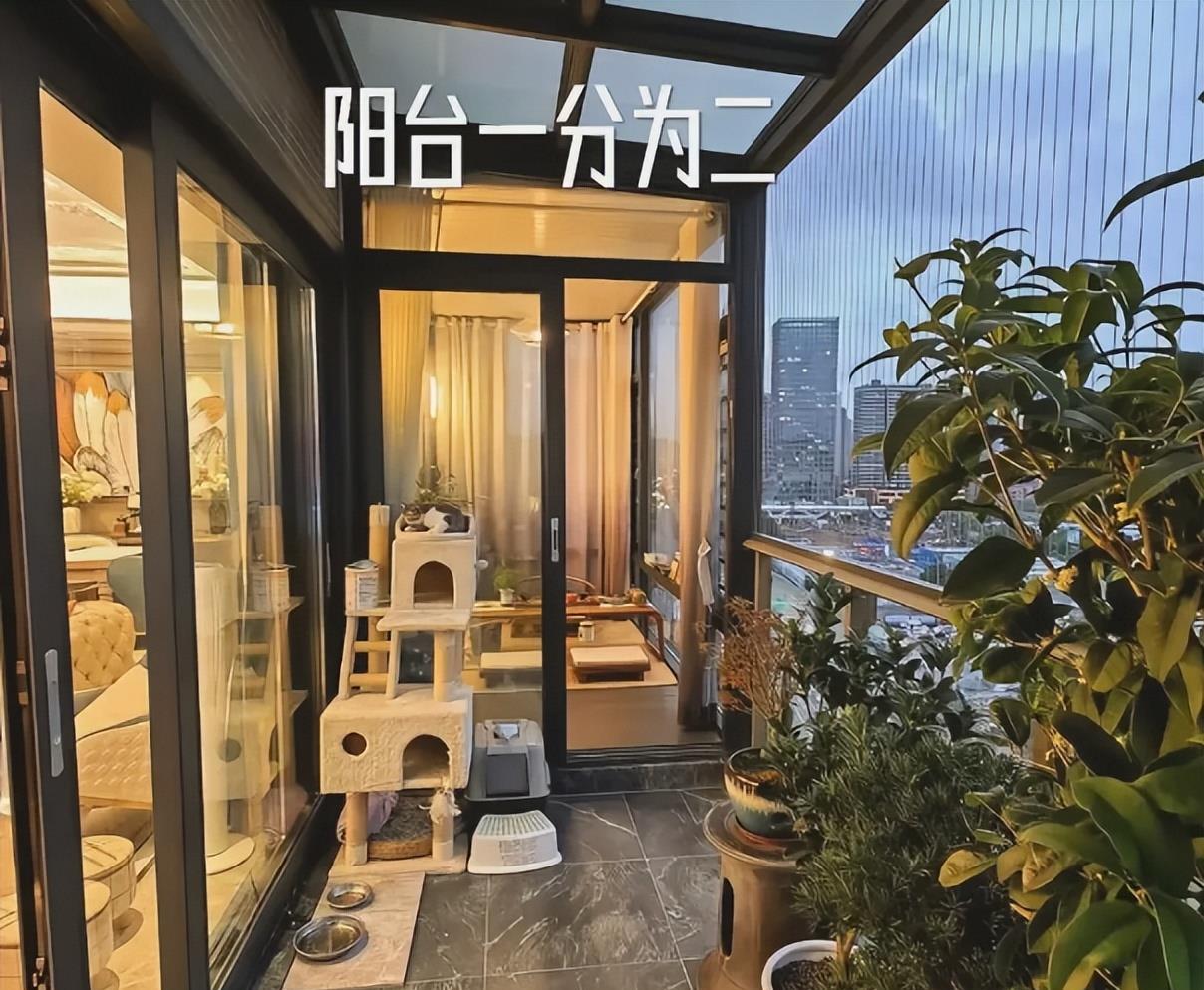 顾名思义,它就是将阳台分成了两个功能区,一个功能区可以用来晒衣服,晾衣服区域就融入到客厅中,将其变成客厅一部分,表面看着会更通透/美观。
