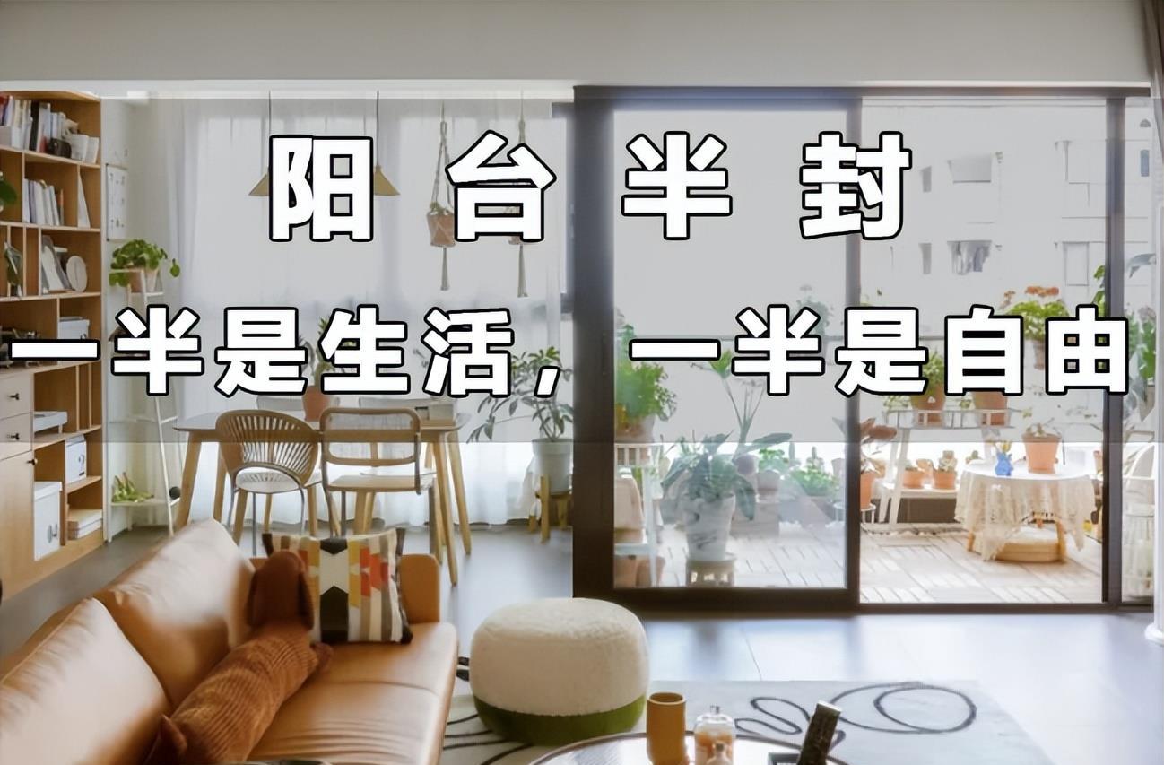 对于大户型的阳台,光去晒衣服太浪费,可以采用现在很流行的设计——阳台封一半留一半!