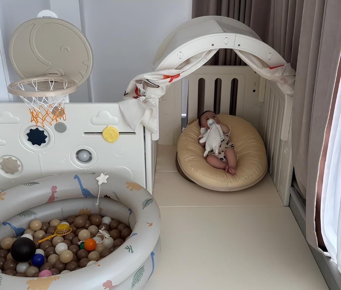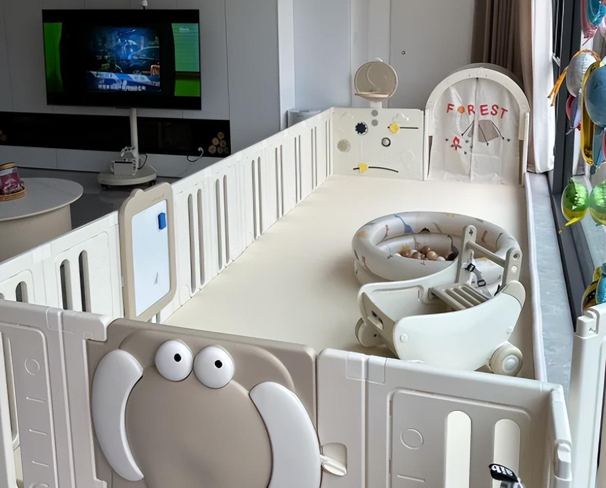 先在阳台周围打造一个小围栏,把这个区域给分开,在中间做上材质好的爬行垫,让孩子在这里玩会觉得很舒适,避免着凉。