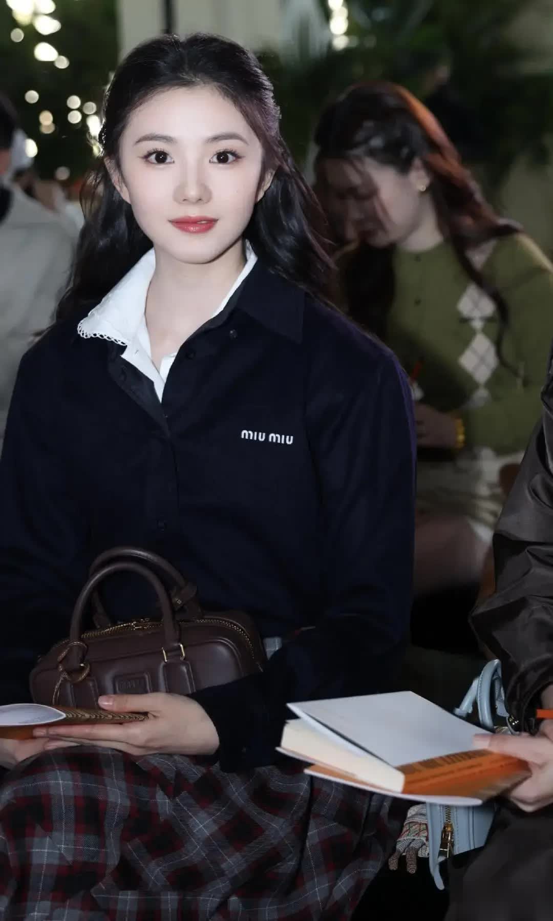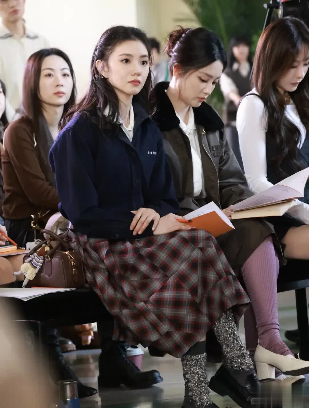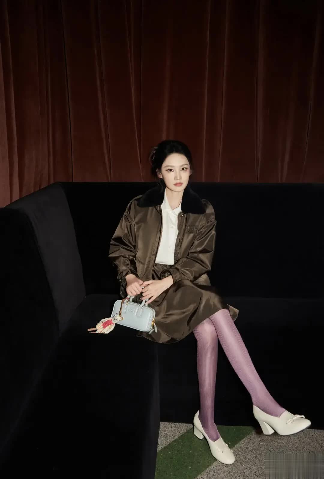 活动现场,李沁以低马尾盘发搭配淡妆,气质清冷中透着书卷气,紫色丝袜不仅没有突兀感,反而与整体造型完美呼应,被时尚博主称为“教科书级细节把控”。她冷白的肌肤在紫色映衬下更显通透,腿部线条纤细修长,优雅又富有艺术感。刘浩存走青春学院风路线,白色衬衫叠穿针织衫,搭配红色格纹短裙和乐福鞋,扎着公主半扎发,甜美灵动,宛如校园剧女主角。两人风格迥异,却都美得令人移不开眼。