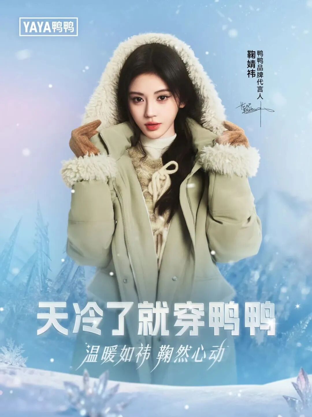 2020年,鸭鸭选中代言人是佟丽娅,但让鸭鸭在市场里砸出硕大水花的,是2023年官宣的内娱顶流王一博。当年,王一博身穿各种款式鸭鸭羽绒服的代言图一出,鸭鸭当日线上全渠道交易总额便超过了2亿元。