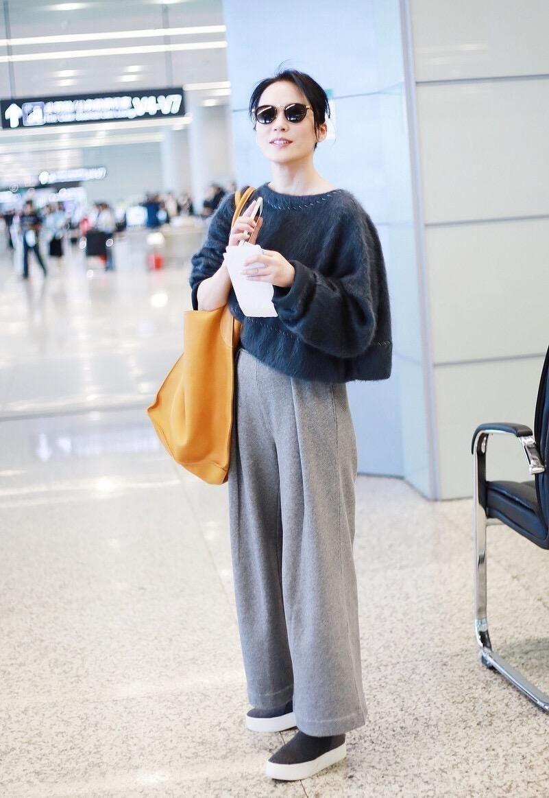 如果只看腿上裤子和脚上所穿的鞋子,会让人觉得这是一身清爽型穿搭。但让人没想到的是,俞飞鸿上半身穿了一件毛衣,毛绒绒的衣服保暖性不用多说,冬天完全可以搭羽绒服穿。让我们来看下身上这款灰色毛衣,它的领口大一些,有助于彰显穿着者的锁骨,顺带着衬得脖子更加的修长。