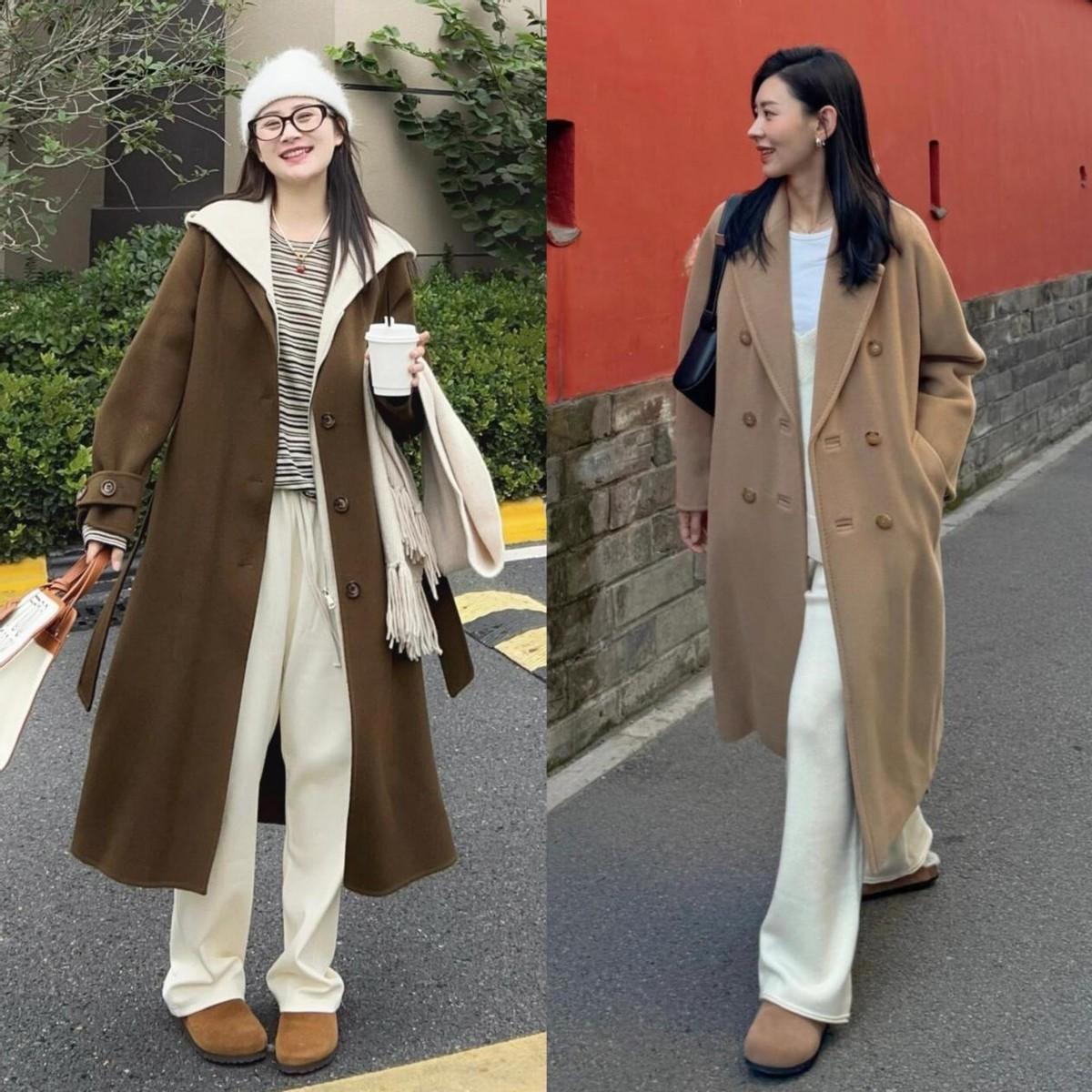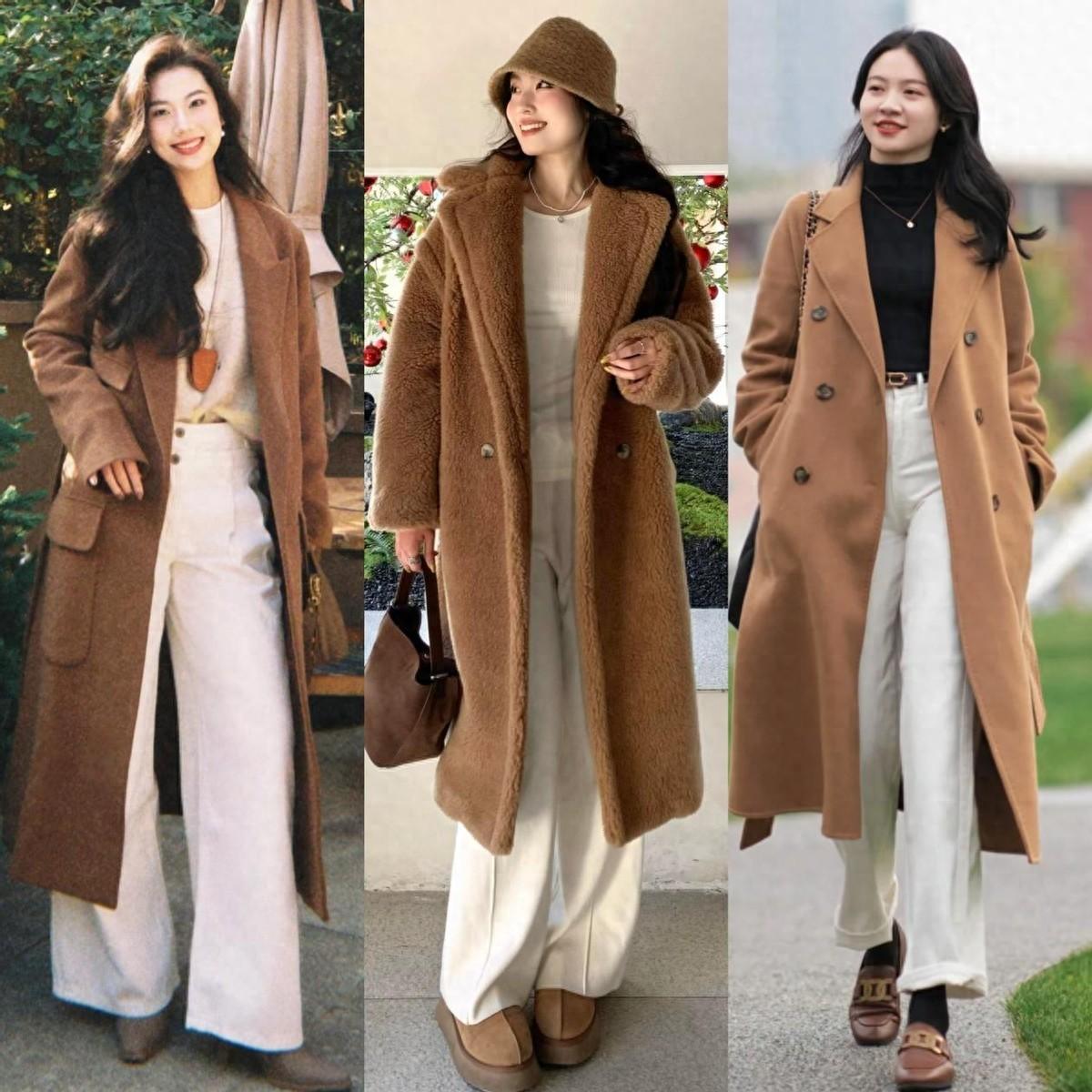 驼色大衣则自带温暖复古气质,与白色的清爽形成恰到好处的碰撞,不会过于张扬,又能跳出路人感。推荐姐妹们选择含毛量80%以上的驼色大衣,长度到小腿中部最是稳妥,遮胯显瘦效果拉满,白色裤子优先选羊毛混纺或斜纹棉材质,避免软塌面料暴露腿型,再踩着平底勃肯鞋,整套造型简约却不失细节,通勤穿优雅得体,约会时又自带温柔滤镜。