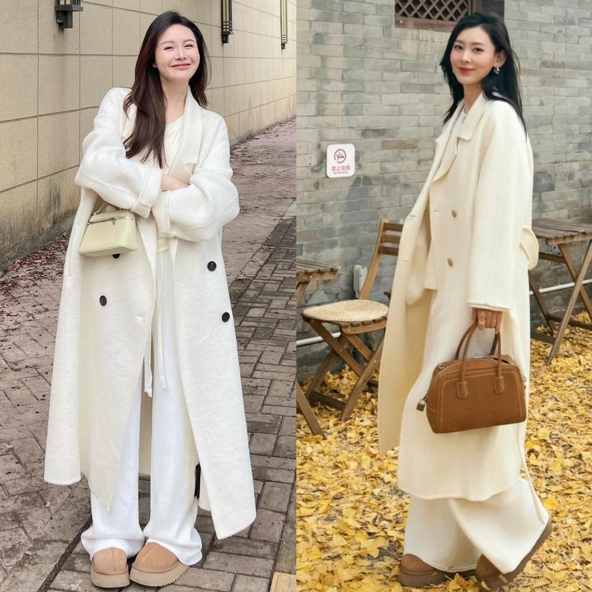 米白色大衣自带温柔滤镜,搭配白裤子更是将“简约即高级”的理念发挥到极致。不同于深色大衣的厚重压迫,这套全白系组合像冬日里的一束柔光,干净通透又显气质,全身没有花里胡哨的设计,自带氛围感,很适合约会穿。