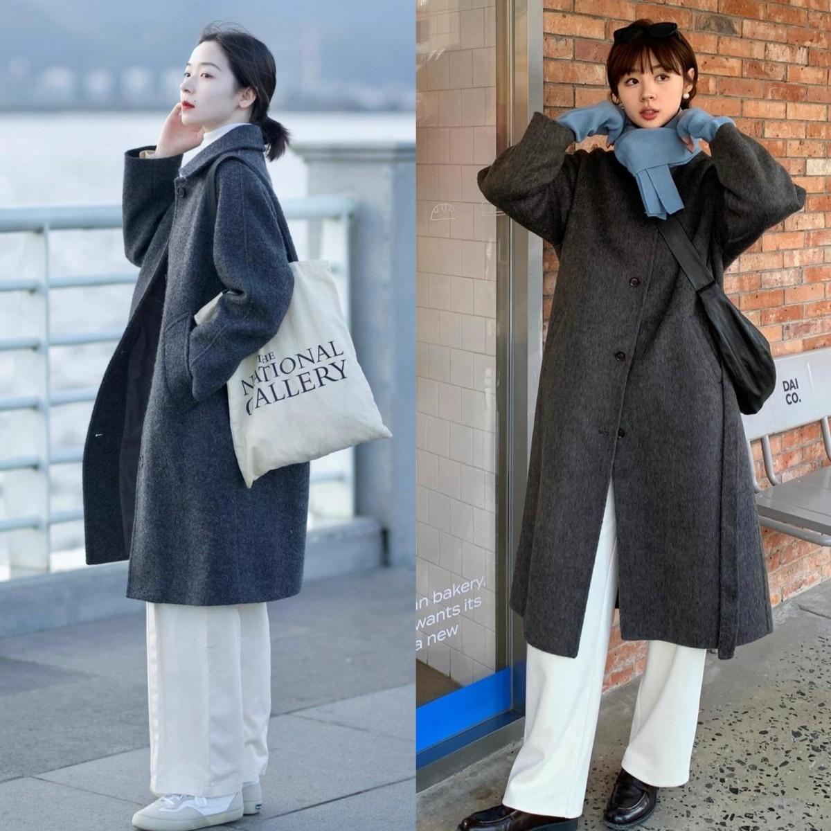 灰色大衣也是今年的流行单品,它自带沉稳内敛的气质,遇上白色阔腿裤的清爽利落,堪称秋冬穿搭的“质感王炸”,比起千篇一律的深色搭配,这组搭配保留了极简风的高级感,又通过白裤子的提亮效果摆脱沉闷,深浅结合起来,耐看还显气质。