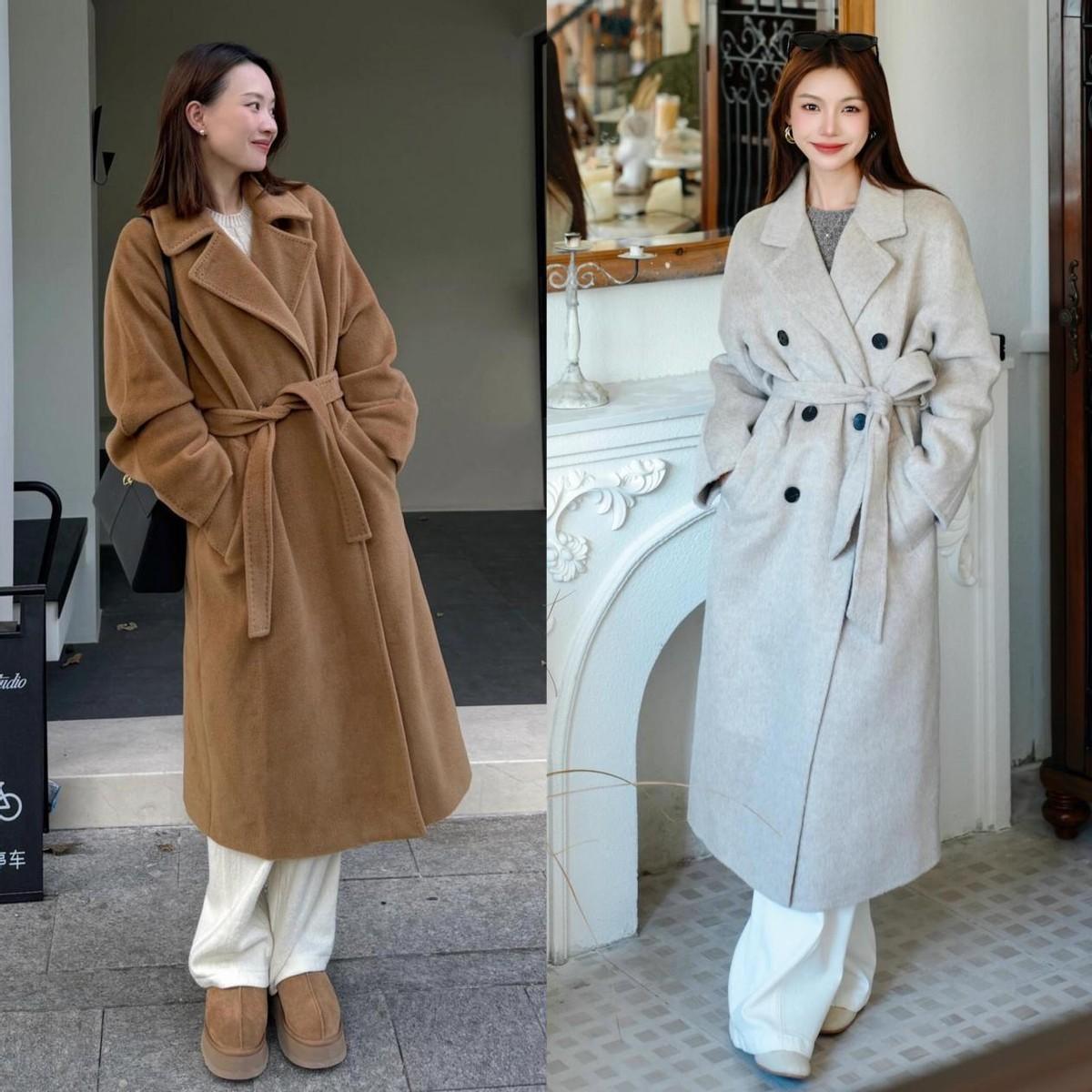 长度控制在小腿中部最为稳妥,这个长度既能遮胯显瘦,又不会显得拖沓。面料方面,羊毛、呢子等材质自带挺括感,比软塌的棉质更显质感,行走间还能展现出自然的垂坠感,谁穿谁显瘦增高。