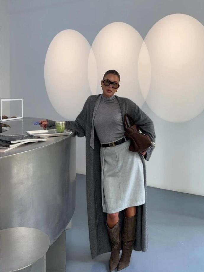 andreyafs 的穿搭最让人着迷的,是那种 “毫不费力的时髦感”。她的衣柜里没有过多繁杂的单品,反而以基础款为主 —— 剪裁合体的衬衫、垂坠感十足的半身裙、版型挺括的针织开衫、百搭的直筒牛仔裤,这些看似普通的单品,在她的搭配下总能焕发别样光彩。她尤其擅长运用色彩的和谐搭配,大多选择低饱和度的莫兰迪色、经典的黑白灰或是温柔的大地色系,通过同色系深浅碰撞或是邻近色搭配,让整体造型既统一又富有层次,不会显得单调乏味。比如用浅灰色针织衫搭配米白色阔腿裤,再配上一双裸色乐福鞋,整体色调柔和又高级,无论是通勤还是约会都合适。