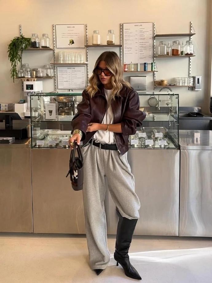 除了色彩搭配,andreyafs 对版型的把控也堪称教科书级别。她深知不同身形的优势与短板,总能通过单品的版型组合扬长避短。对于上半身偏瘦的人,她会选择略带宽松感的上衣,搭配修身的下装,平衡整体比例;而面对宽松的外套,她则会用腰带勾勒腰线,避免造型显得拖沓臃肿。她的穿搭从不追求过度紧绷的贴合,而是保留适度的松弛空间,让身体舒展的同时,也让造型多了一份随性自在的气场。就像她常穿的 oversize 西装,搭配紧身牛仔裤和简约帆布鞋,既有职场的利落感,又不失日常的休闲氛围,适配多种场景。