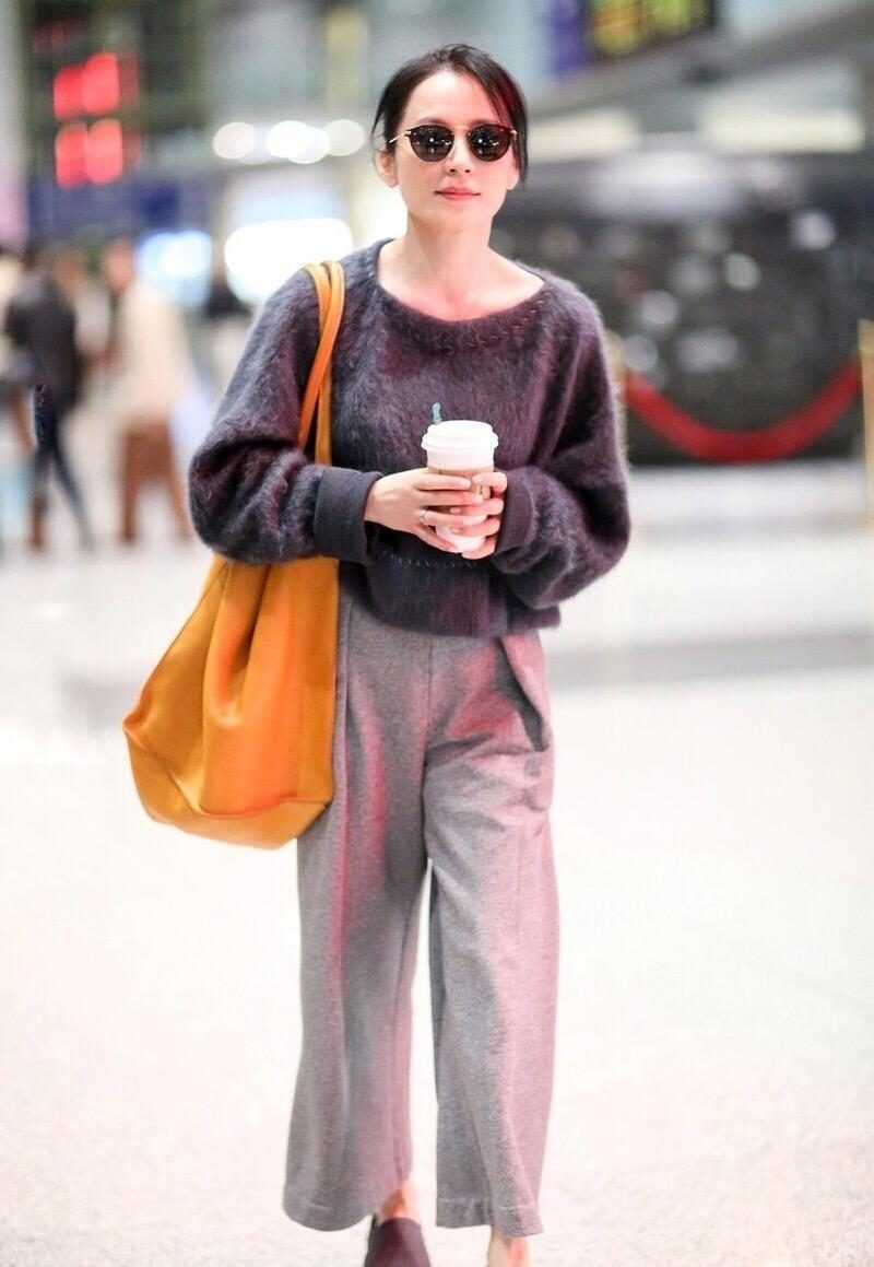 如果只看腿上裤子和脚上所穿的鞋子,会让人觉得这是一身清爽型穿搭。但让人没想到的是,俞飞鸿上半身穿了一件毛衣,毛绒绒的衣服保暖性不用多说,冬天完全可以搭羽绒服穿。让我们来看下身上这款灰色毛衣,它的领口大一些,有助于彰显穿着者的锁骨,顺带着衬得脖子更加的修长。