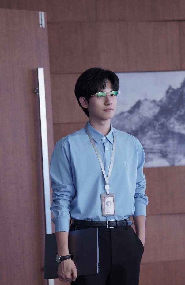 男生的“清爽靠谱风”同样值得抄:剧中的年轻职员这套浅蓝衬衫+黑西裤,是“不出错但不普通”的典范。衬衫选了带暗纹的款式,比纯色更有质感却不张扬;袖口微微卷起露出手腕的手表,工牌挂绳选了简约的浅色系,细节处的克制让整体造型显得干净利落。手里的笔记本和插在裤袋的手,更是把“职场新人的认真感”穿了出来:不用刻意扮成熟,清爽整洁就是最好的名片。