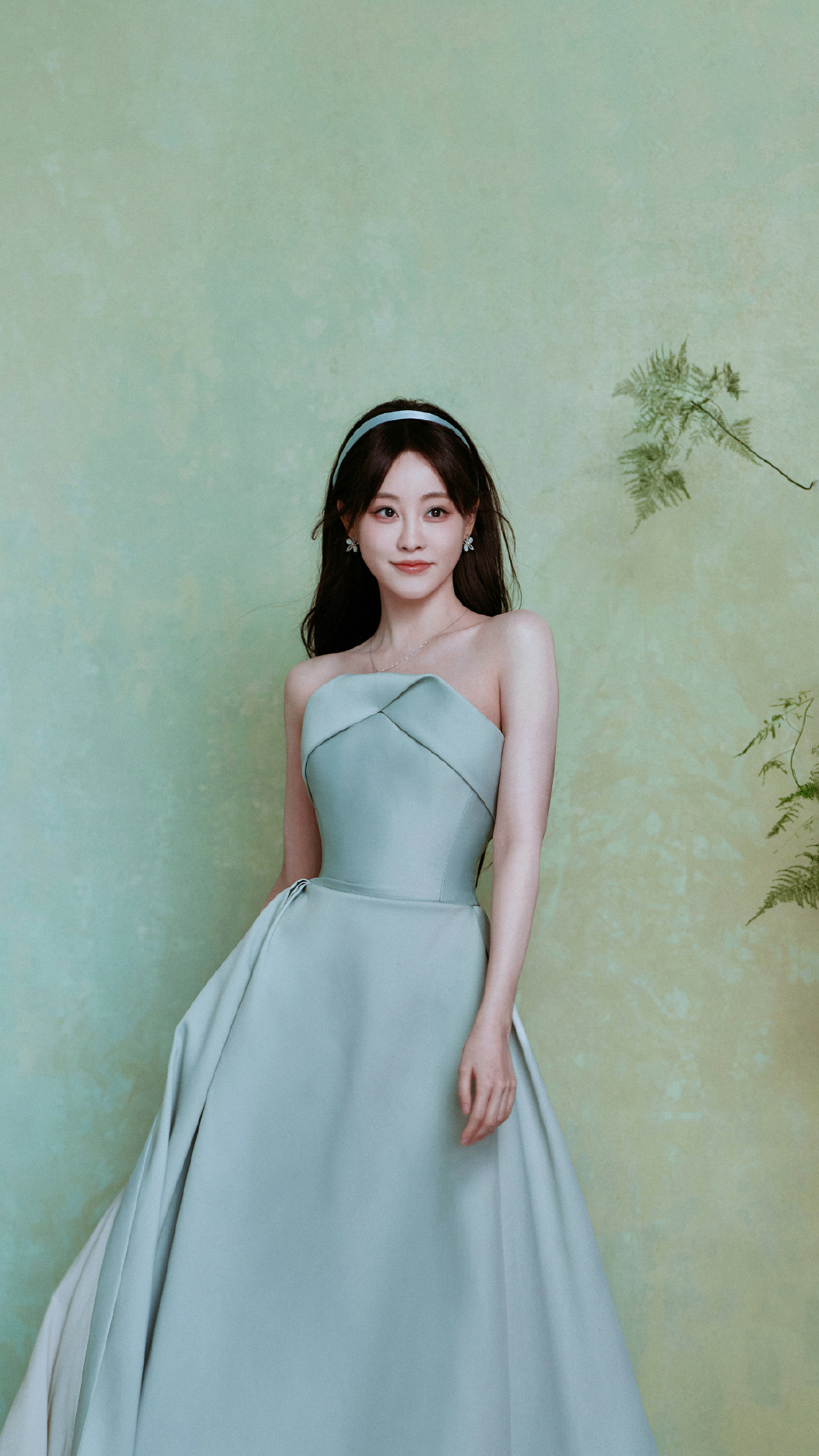 更绝的是,这身造型不仅颜色拿捏住了“万物复苏”的精髓,连剪裁都透着一股子高级的松弛感。抹胸设计恰到好处地露出锁骨线条,既不过分张扬,又自带温柔buff,仿佛在说:“姐今天不争不抢,但C位必须是我的。”网友直呼:这哪是红毯?分明是仙女下凡踏青来了!