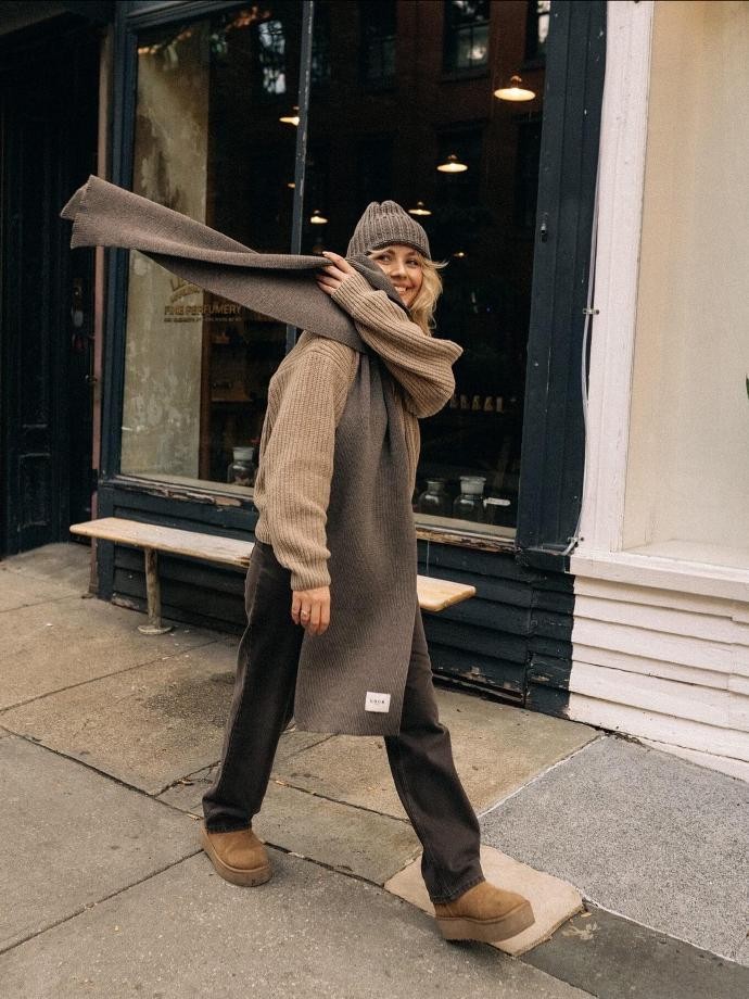 olcyk 的穿搭精髓,在于对 “简约与质感” 的极致把控。她的衣橱里多是基础款单品,比如剪裁利落的白衬衫、垂坠感极佳的阔腿裤、软糯的针织衫和版型经典的风衣,但通过巧妙的搭配,总能穿出不一般的高级感。她擅长运用同色系搭配,比如米白色针织套装叠加浅驼色大衣,或是深灰色西装搭配炭黑色直筒裤,色彩统一却不单调,反而通过材质的差异 —— 比如羊毛的厚重与真丝的轻薄碰撞,让造型层次感十足。在色彩选择上,她偏爱低饱和度的莫兰迪色、大地色和经典黑白灰,这些颜色不挑肤色,还能轻松提升穿搭的高级质感,让整套造型显得沉稳又有品味。