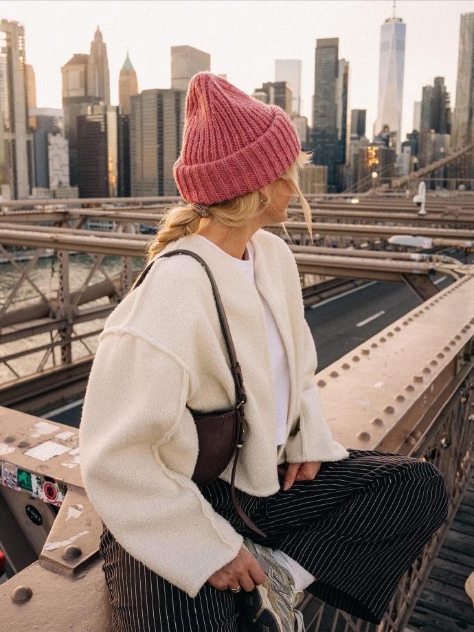除了色彩和材质的拿捏,olcyk 对版型的把控也值得细细琢磨。她深知不同身材的优势与短板,总能通过 “上紧下松”“上宽下窄” 的搭配原则优化比例,比如用修身的针织打底搭配宽松的阔腿裤,或是用 oversized 的衬衫搭配高腰紧身牛仔裤,既包容了身材缺点,又能打造出利落的线条感。配饰在她的穿搭中也扮演着画龙点睛的角色,一条细巧的金属项链能让基础款白衬衫摆脱单调,一个质感出众的腋下包能为简约造型增添精致感,甚至一双设计独特的乐福鞋,都能成为整套穿搭的亮点。更难得的是,她的配饰大多简约百搭,不会让造型显得杂乱,反而能恰到好处地提升时髦度。