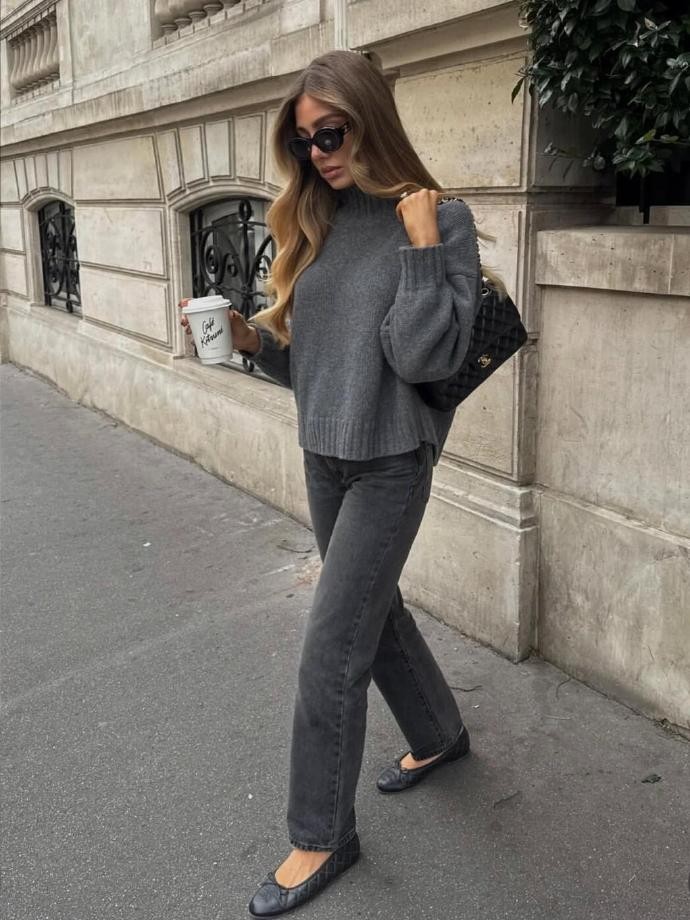 色彩搭配是marielouduvillier穿搭中另一个值得关注的点。她偏爱低饱和度的莫兰迪色系和经典的中性色,如米色、燕麦色、灰色、黑色等,这些颜色不仅容易搭配,还能营造出温柔、高级的氛围。偶尔她也会加入一些亮色作为点缀,比如一件酒红色的针织衫、一条姜黄色的半身裙,或者一双宝蓝色的鞋子,但这些亮色从不喧宾夺主,而是与整体的低调色系相互映衬,让造型更加生动有趣。例如她曾晒出的一套造型,上身是燕麦色的高领毛衣,下身搭配深灰色的半身长裙,脚上穿着一双酒红色的短靴,手提一个黑色的小皮包,整体色彩和谐统一,又因为酒红色短靴的加入而多了一丝亮点,让人眼前一亮。这种色彩搭配技巧,既避免了大面积亮色带来的浮夸感,又能让穿搭不显得单调乏味,非常适合日常穿着。