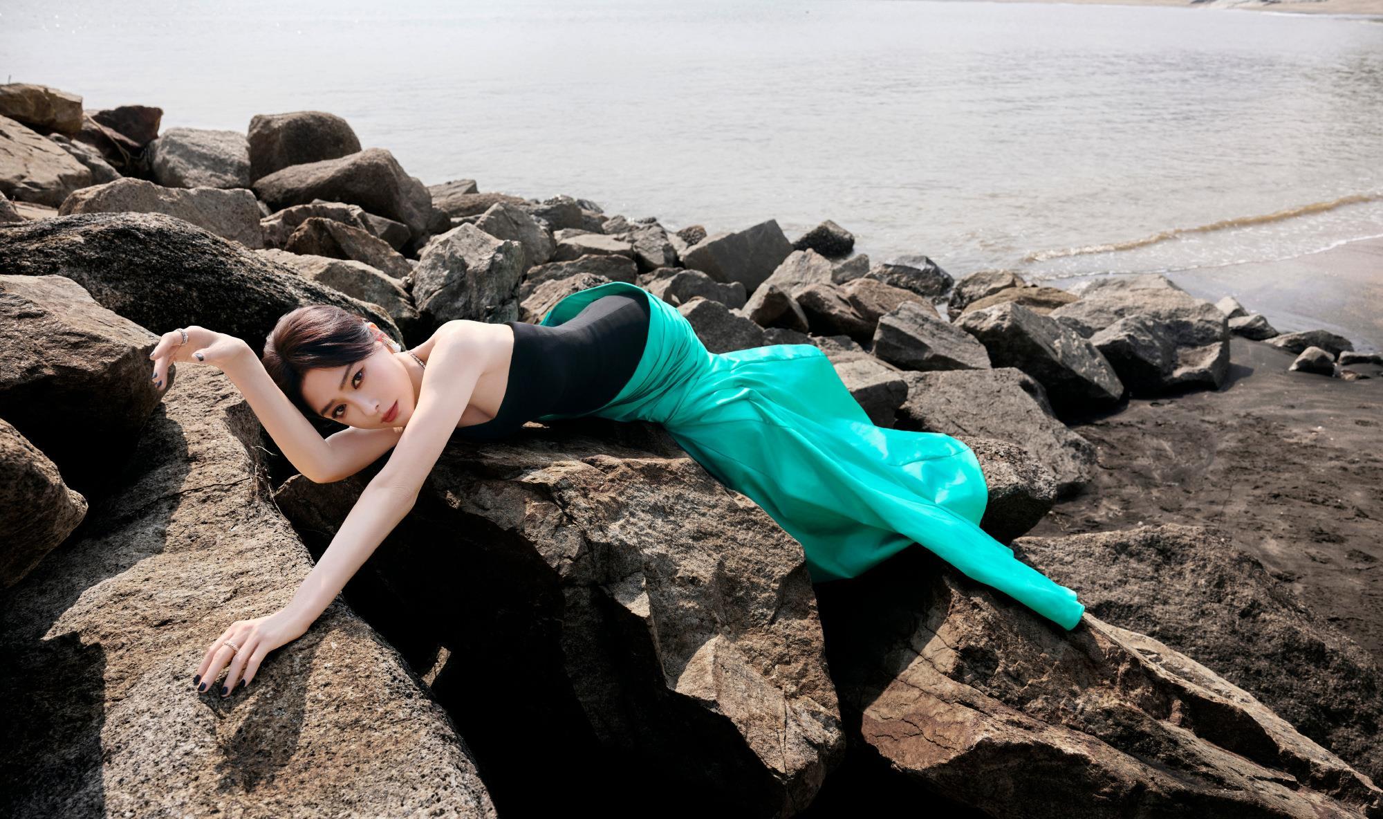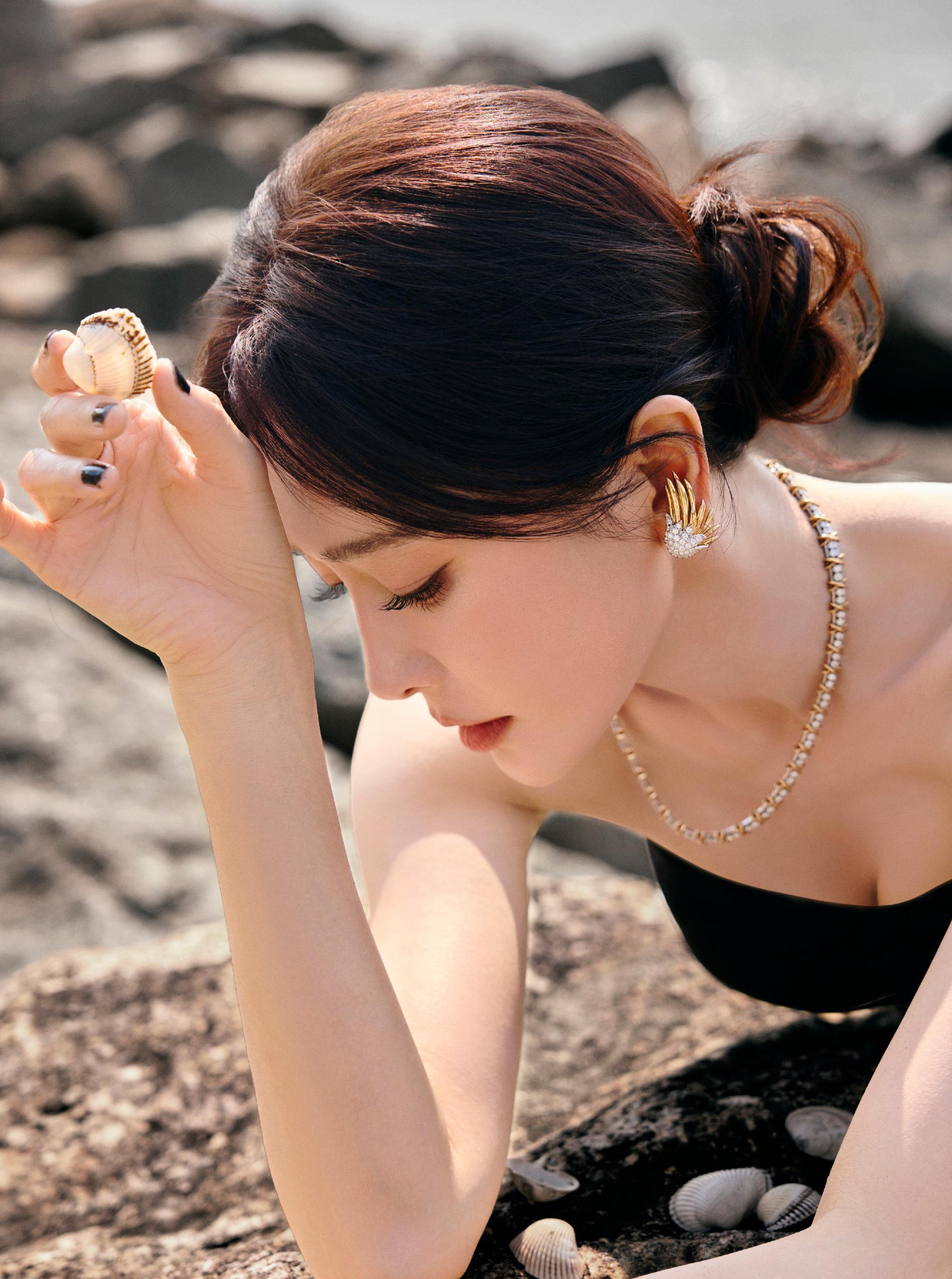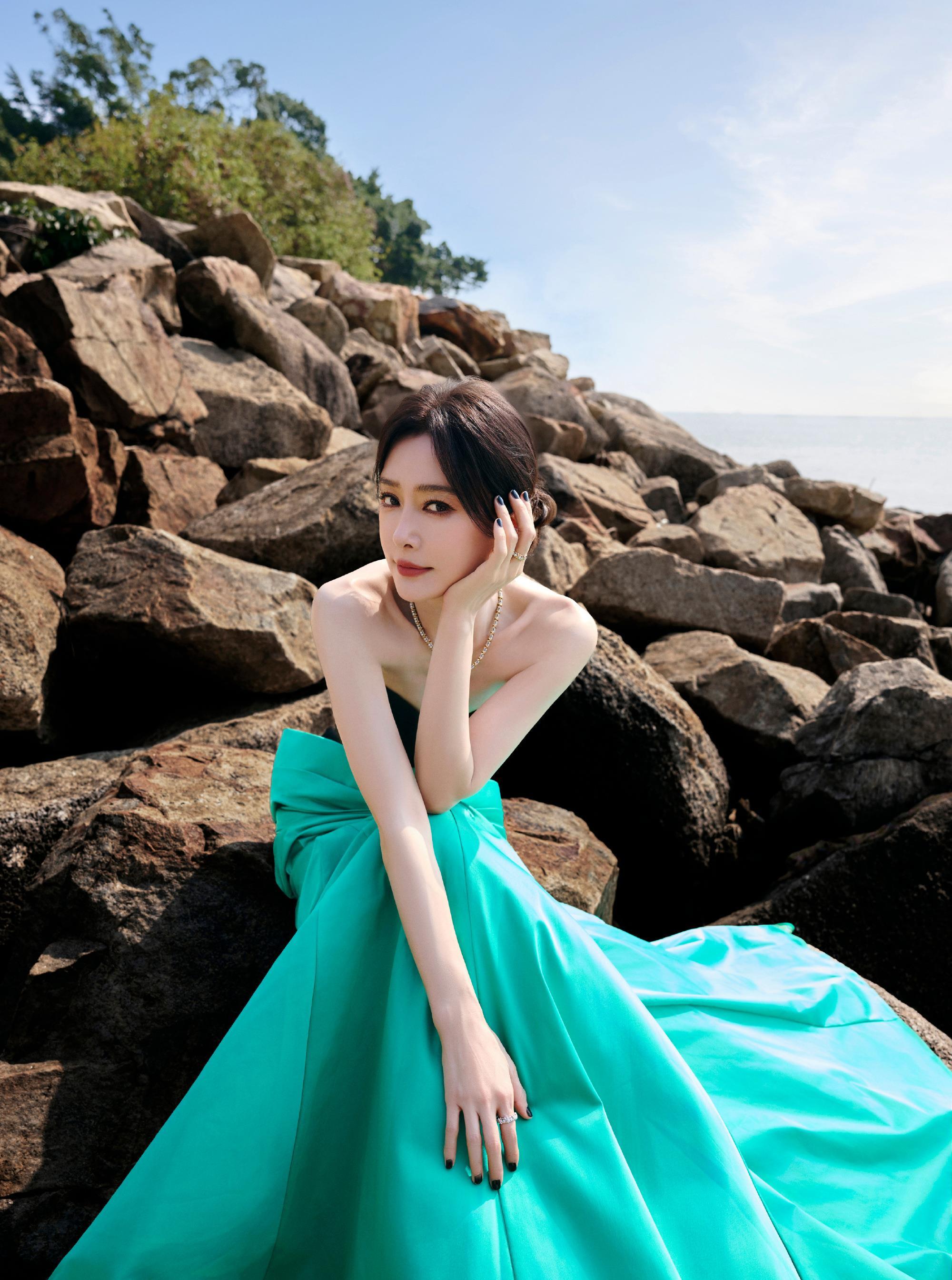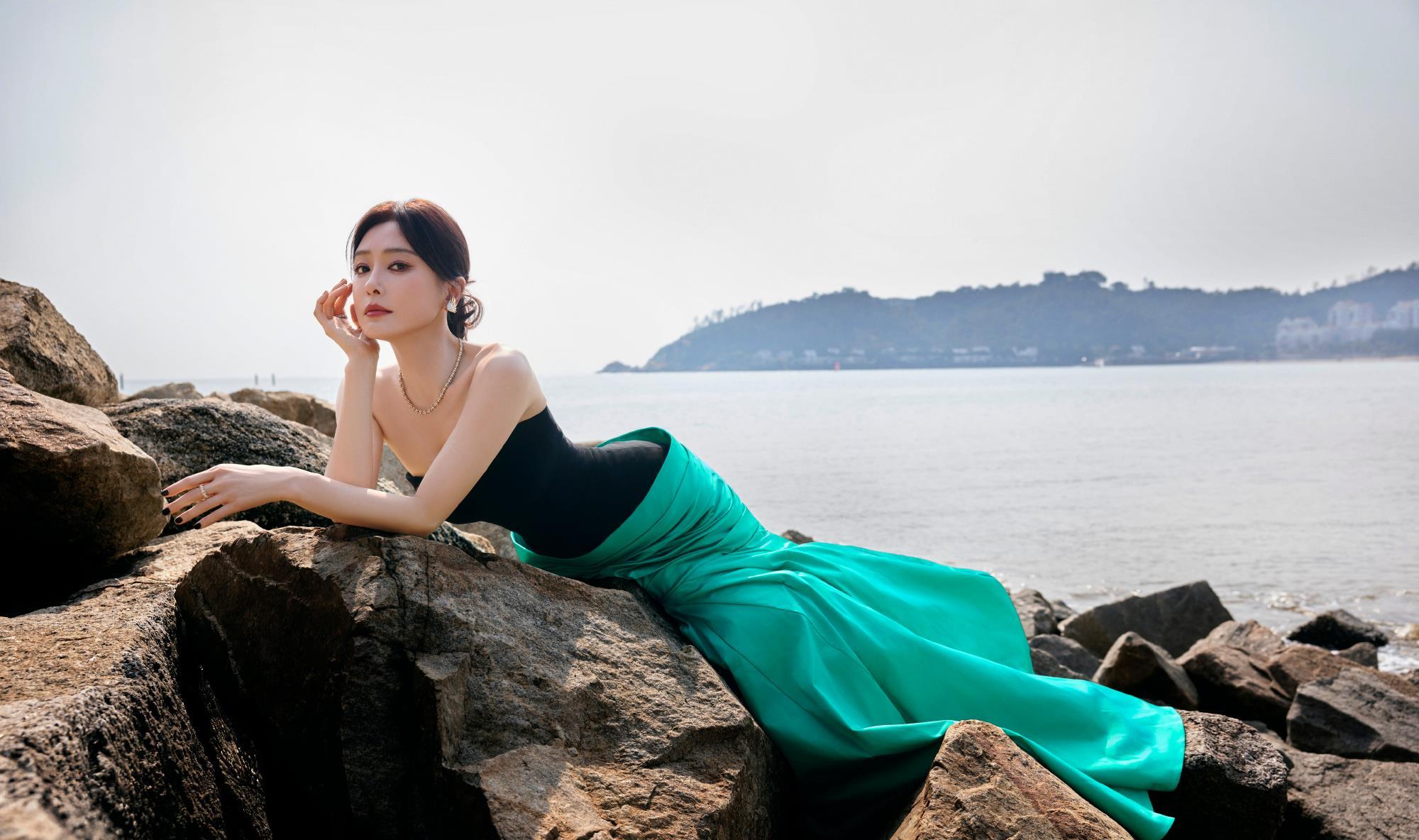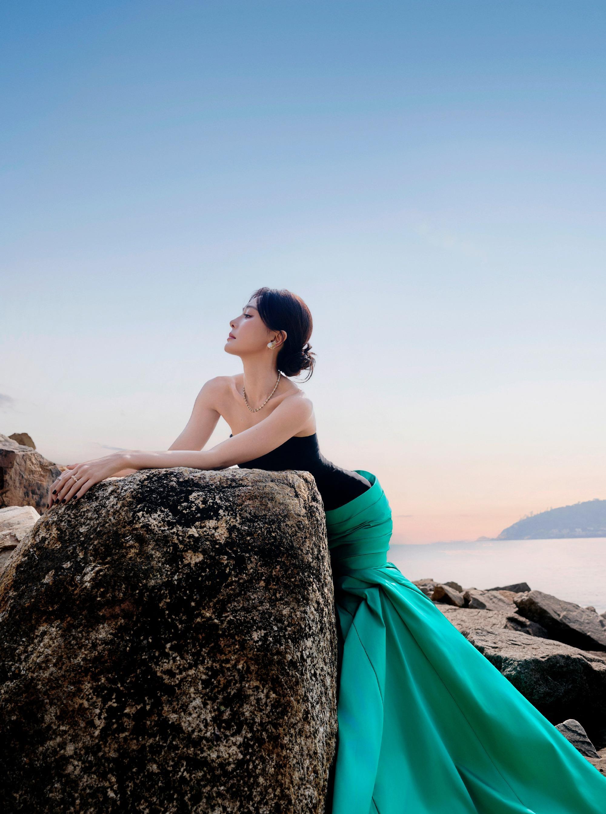 更值得玩味的是,她当时身着的蓝色礼服,其设计被赋予了许多文化想象,从《千里江山图》到敦煌石青,试图诠释一种被岁月沉淀过的东方气韵。此番黑蓝拼色礼裙亮相海边,仿佛是将那份典雅的“静”与自然澎湃的“动”结合在一起,完成了从室内秀场到天地舞台的场景升华。