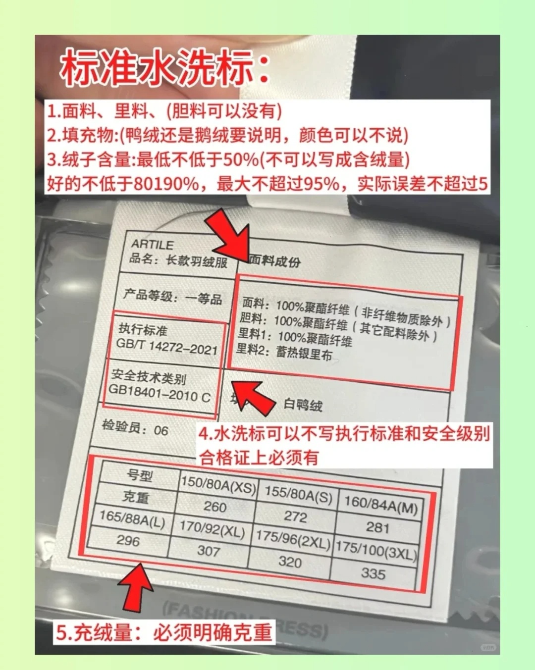 所以大家在买羽绒服的第1件事就是看标签,并不是所有的羽绒都叫真羽绒,新国标明确规定绒子含量必须≥50%才能叫做羽绒服。