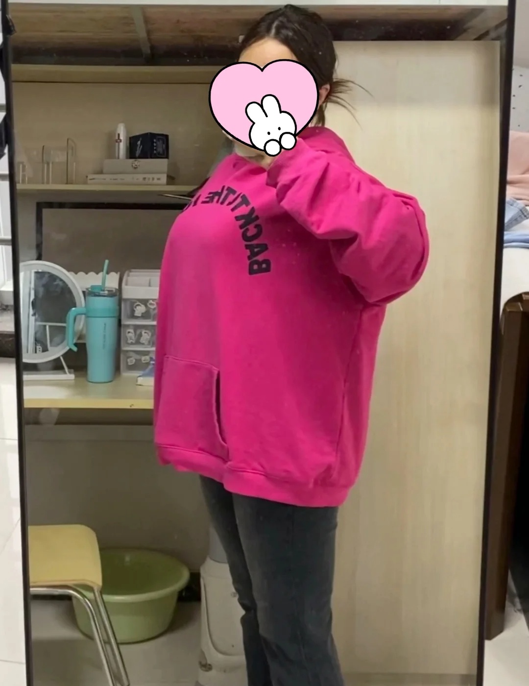 我们看模特穿都非常好看,可模特毕竟不是普通人,我们也没有模特那么瘦,穿上oversize卫衣就会显得虎背熊腰,更别说什么慵懒感了,简直就是活脱脱大妈感!