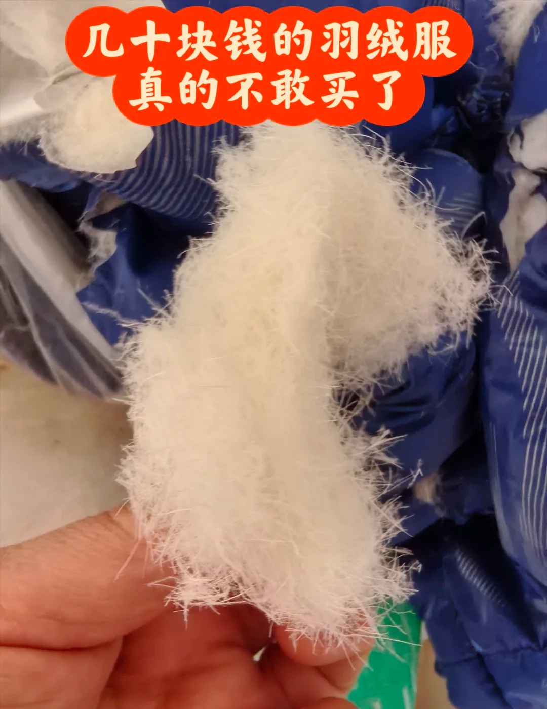 买到了假羽绒服,不仅不保暖,里面的填充物也不知道是什么东西,可能把垃圾毛穿在身上还不知道。