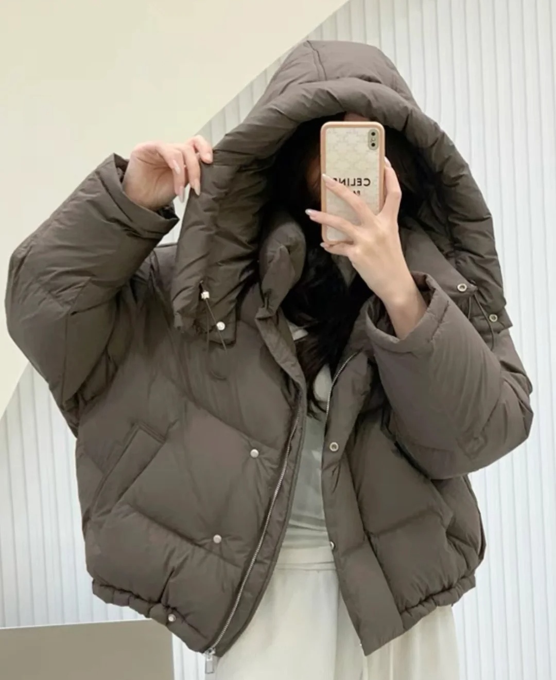 推荐大家购买绒子含量在90%或以上的,这样的羽绒服朵绒完整,捏着也没有硬梗。