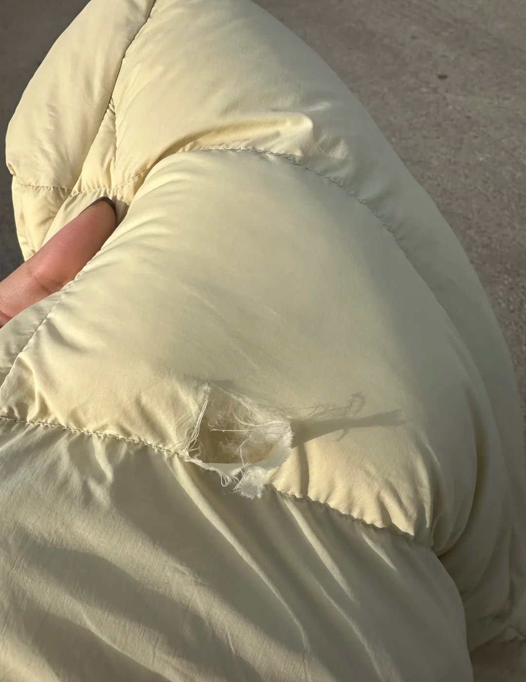 可这么不耐脏的羽绒服,也真是不抗穿,那问题其实就出现在它的面料上,是那种很薄的锦纶。因为它本身非常柔软,