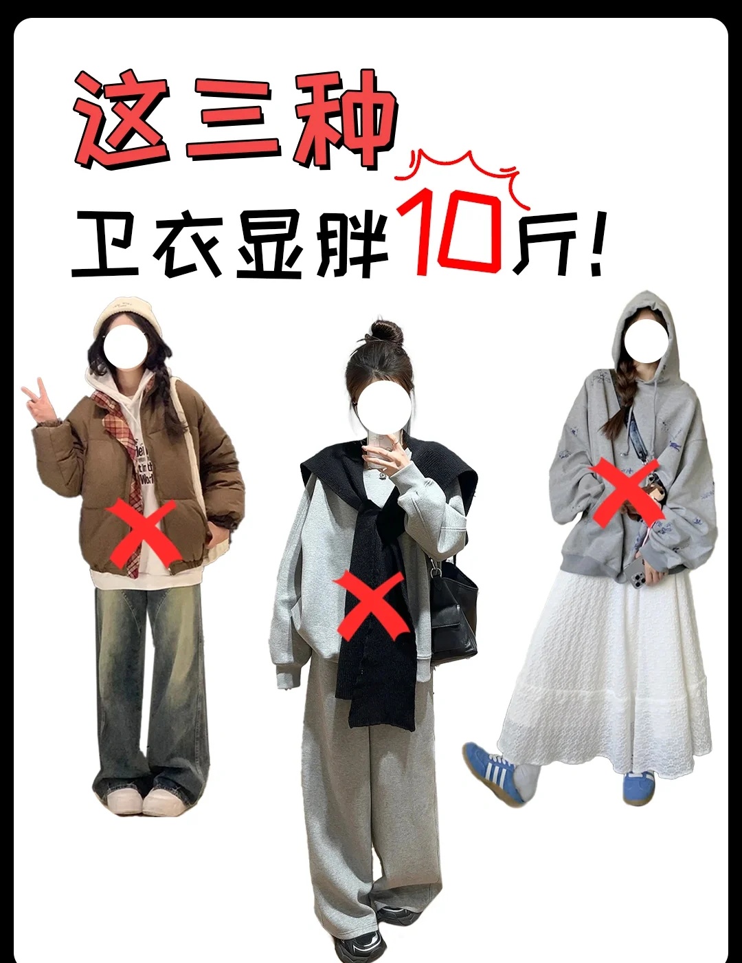 羽绒服里的内搭,除了选择毛衣之外,还有卫衣。然而在选择卫衣的时候,最好不要选择oversize款卫衣。