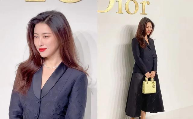 朱珠穿的是黑色廓形西装搭配黑色半裙,大波浪长发以及红唇已经成了她的标志性妆造,一颦一笑都在散发成熟女性的魅力。