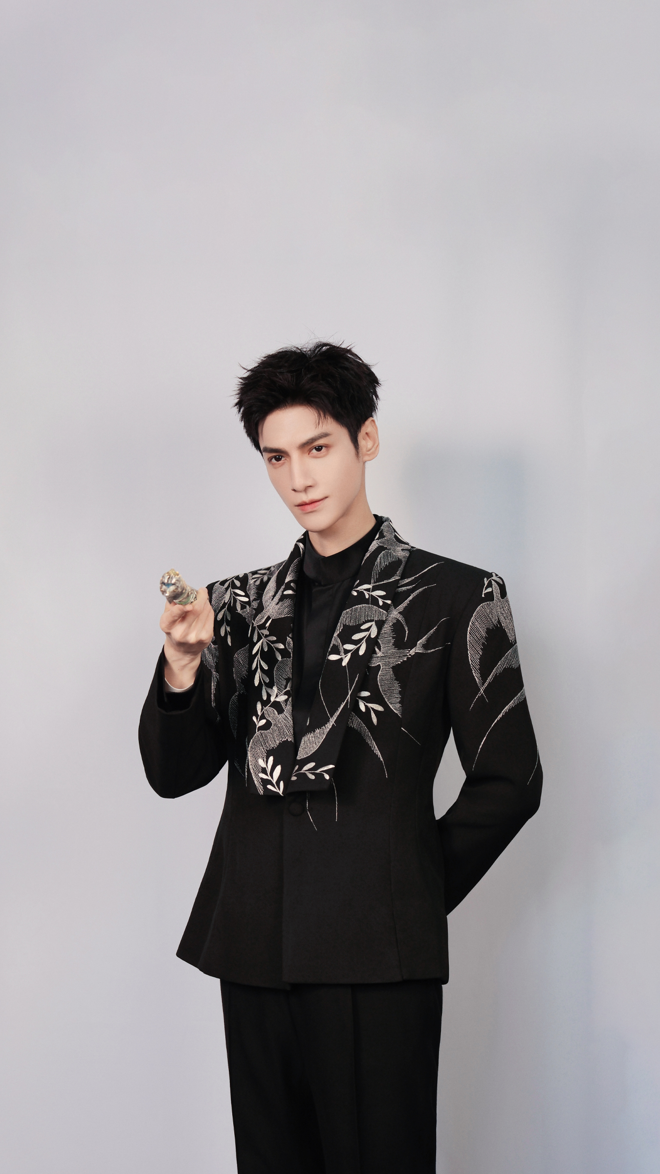 更绝的是那些藏在细节里的小心机:银线勾勒的花鸟纹样,远看低调内敛,近看却惊艳到让人想掏出放大镜细细研究。每一针每一线,都像是从宋画里偷来的诗意,悄悄缝进了21世纪的西装布料里。谁说国风只能配长衫马褂?罗云熙用一身行头告诉你:老祖宗的审美,完全可以穿出国际T台范儿!