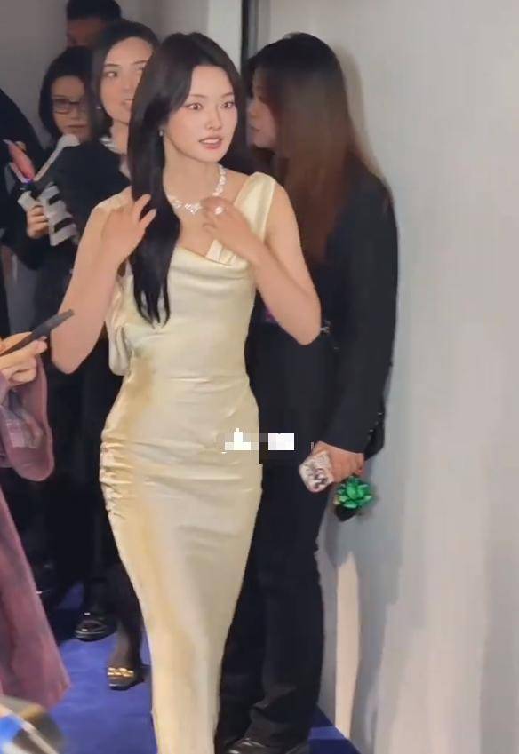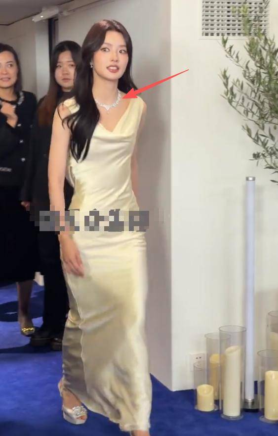 香槟色露背长裙,搭配上白色耀眼的奢华珠宝项链,让徐若晗整个人都充满了贵气。