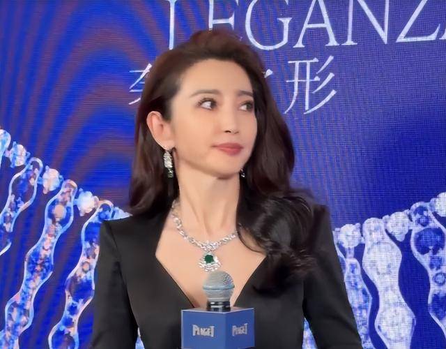黑色修身深V长裙,将李冰冰完美的身材勾勒了出来,再加上脖子上华贵的珠宝修饰,整个人美艳至极。
