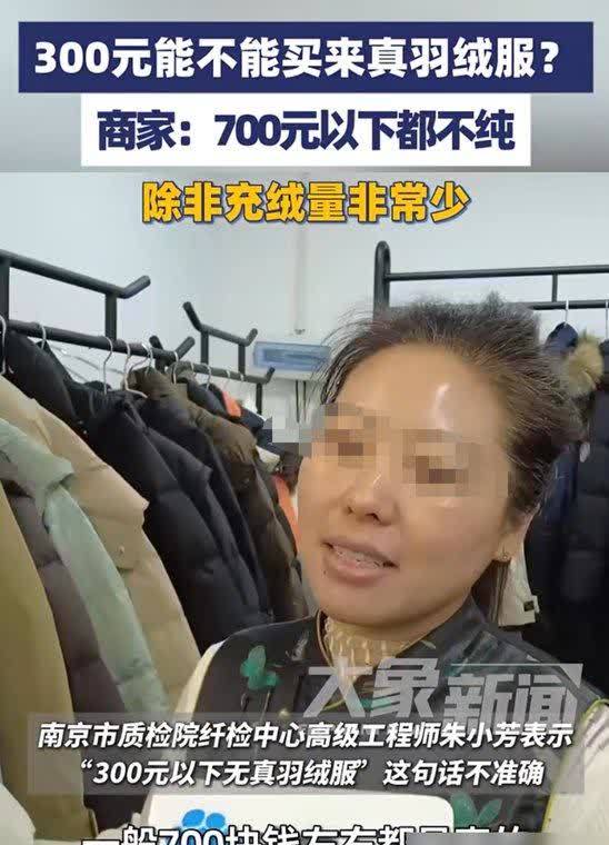 所以,如果市面上标着90%白鸭绒的羽绒服,售价却低于300元,那只有两种可能: