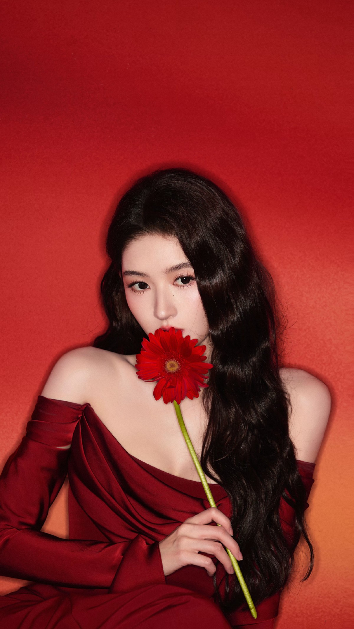 而那一头乌黑亮丽的卷发,如瀑布般自然散落,与红裙相互映衬,形成了强烈的视觉冲击,更添复古风情。精致的妆容宛如画龙点睛之笔,尤其是那一抹与礼服相呼应的红唇,鲜艳欲滴,仿佛是点燃整个造型的火焰,将她的气质衬托得愈发冷艳动人。