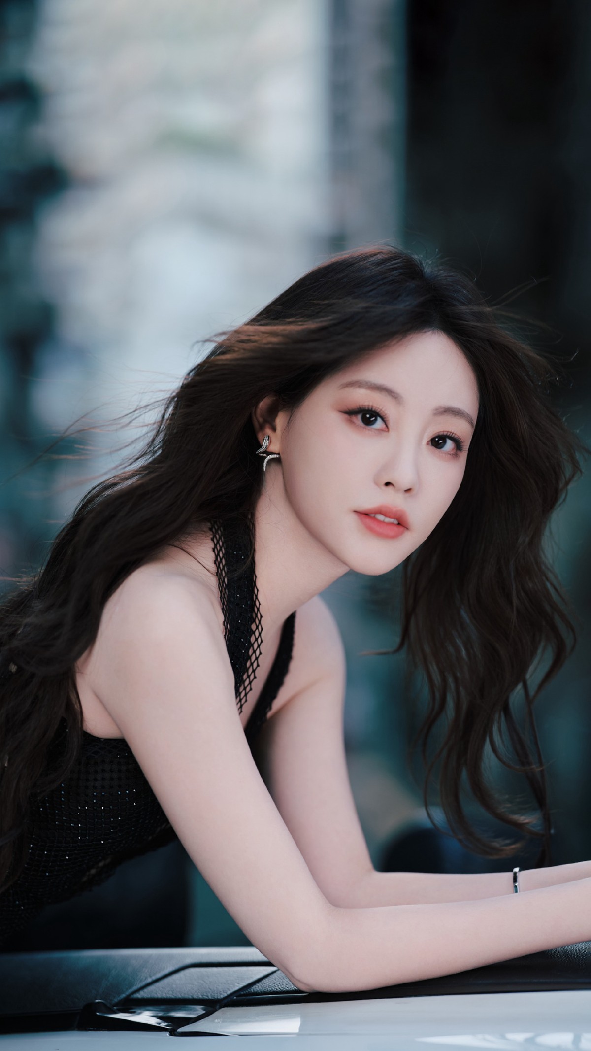 手里那束红玫瑰?简直是神来之笔!浓烈的红撞上沉稳的黑,瞬间点燃整个画面。这不是随便拿朵花摆拍,而是用色彩讲了个故事——热烈又克制,性感却不张扬。再配上她自然垂落的微卷长发,慵懒中带着一丝不经意的精致,温柔得让人想屏住呼吸。