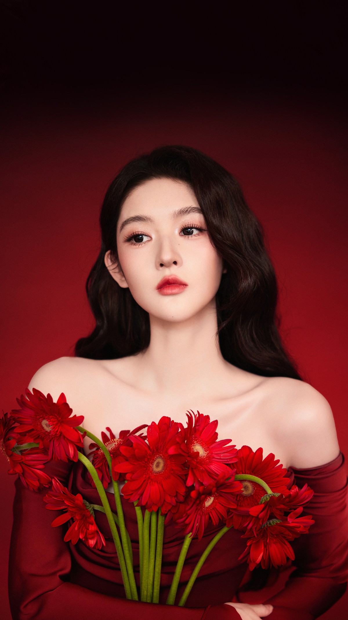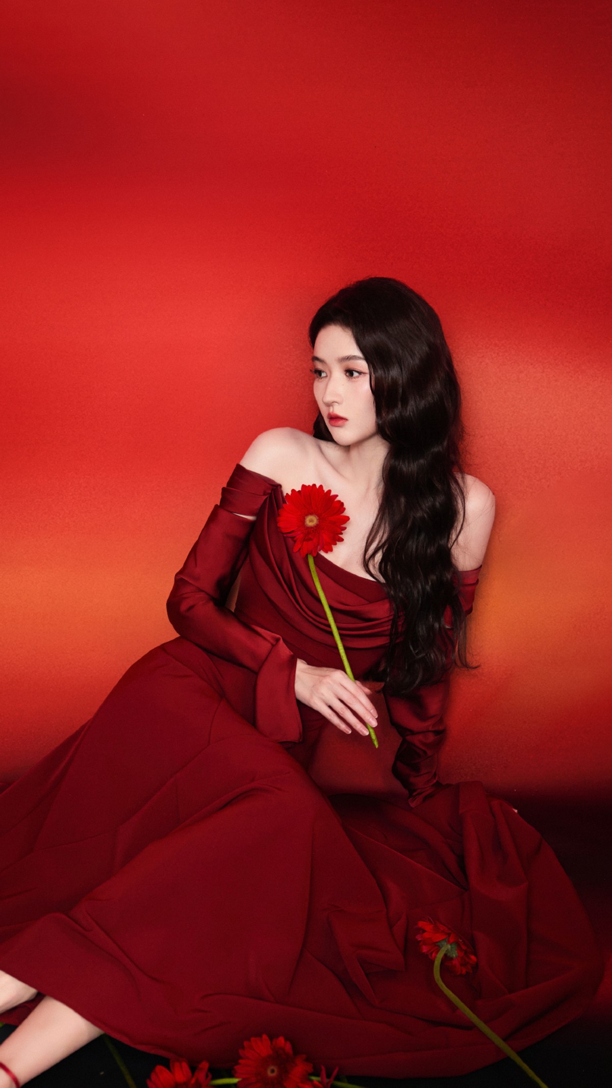 而那一头乌黑亮丽的卷发,如瀑布般自然散落,与红裙相互映衬,形成了强烈的视觉冲击,更添复古风情。精致的妆容宛如画龙点睛之笔,尤其是那一抹与礼服相呼应的红唇,鲜艳欲滴,仿佛是点燃整个造型的火焰,将她的气质衬托得愈发冷艳动人。