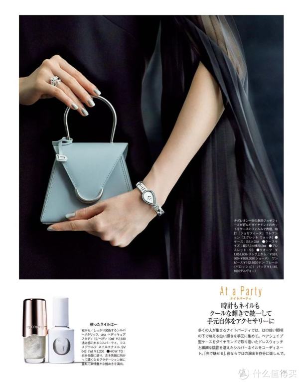 一场聚会行头,那是面面俱到的讲究。手表可选晚装款,与精致小包、璀璨钻戒一起,彰显华美、奢华。甲油可选光泽银色调,闪闪发光,准备在宴会中脱颖而出。