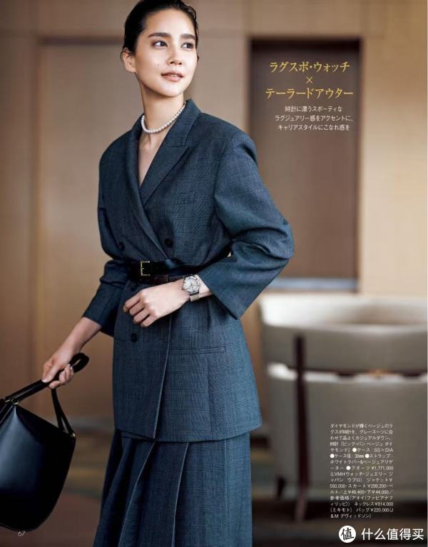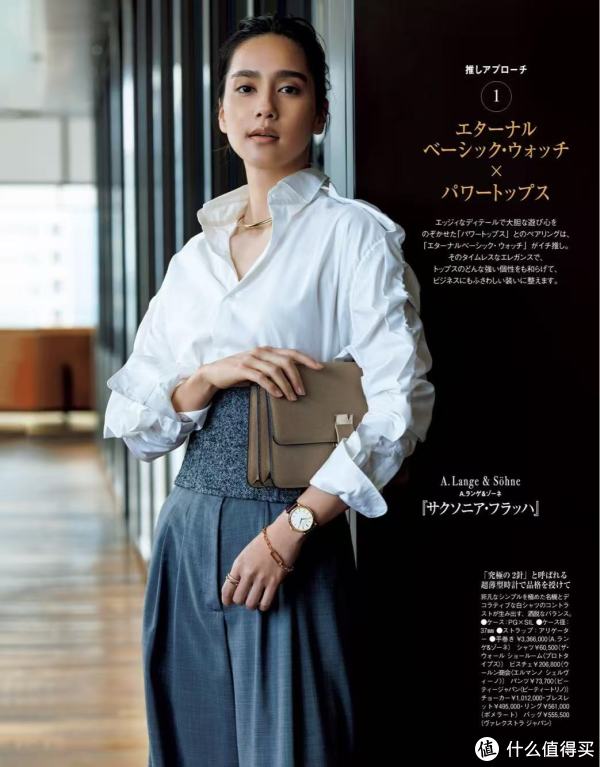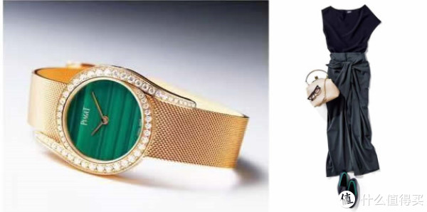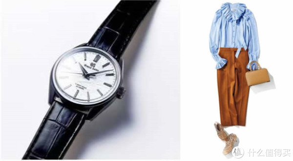 佩戴时,可用配色呼应法,来与服饰融合。比如棕褐色穿搭,金边黑盘的精致手表,如同点睛之笔,与包包呼应,点明主题。精致造型,同样有严谨的表达。