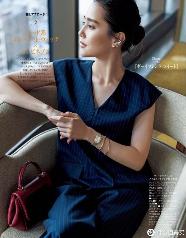中性手表的气势,与西装的气势,简直一拍即合。这是职场中最能代表说一不二的穿搭,将契约精神、合作本色,演绎到位。当然可混搭珍珠等女人味饰品,来调和中性。你也可以加一条细手链,直接作用于手表来调和。