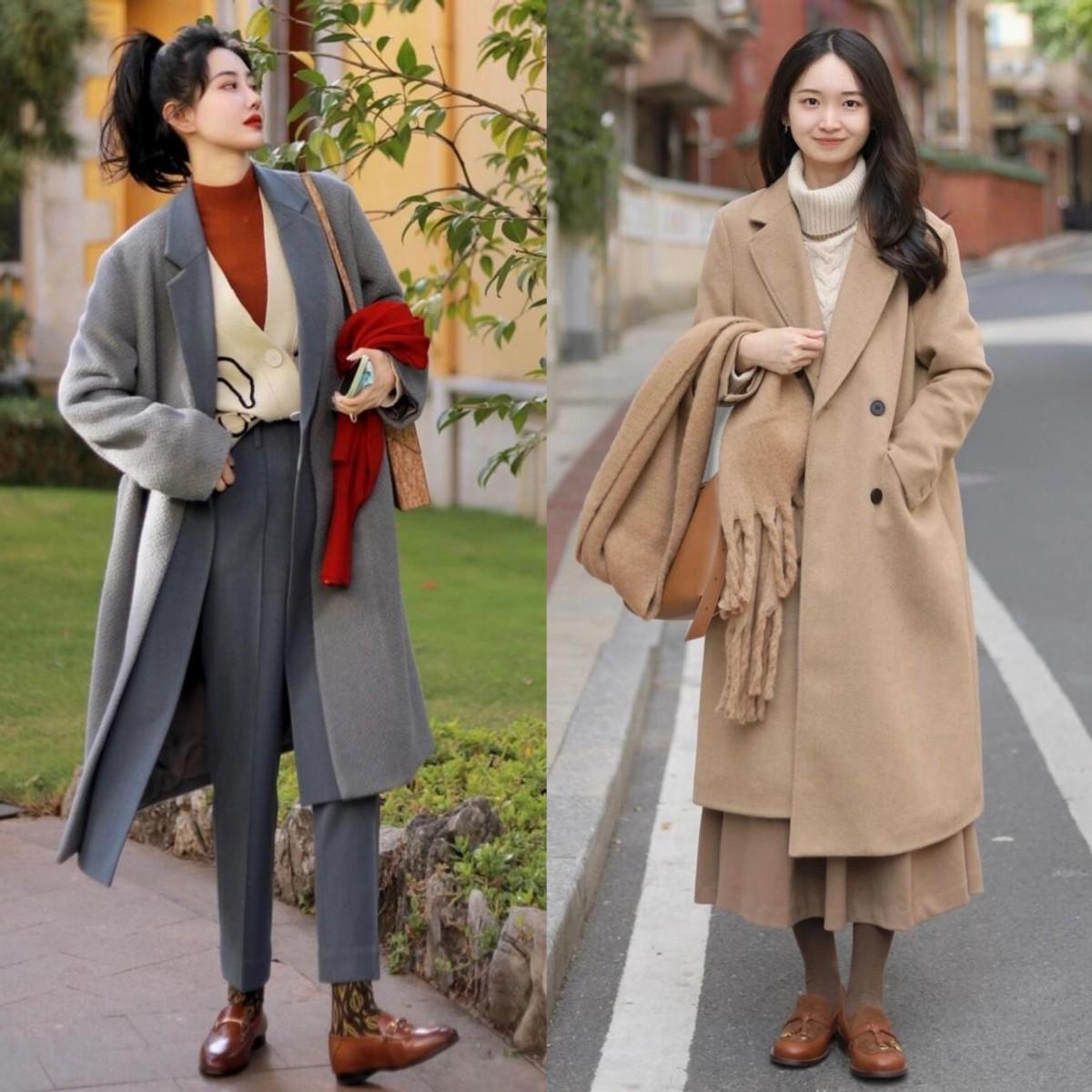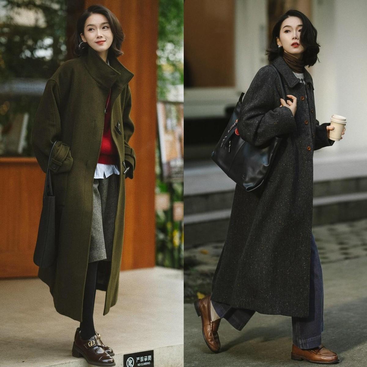 想要穿得更有层次,细节搭配很关键,秋冬穿长款大衣时,搭配过膝半身裙或者是搭配九分直筒裤露出脚踝,就可以轻松拉长腿型,小个子穿也能穿出利落气场。