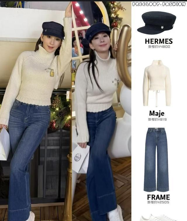 这件八百元的白色短款毛衣,正好展示出了方媛的腰部曲线。也有网友指出,看着方媛的腿是不是粗了?